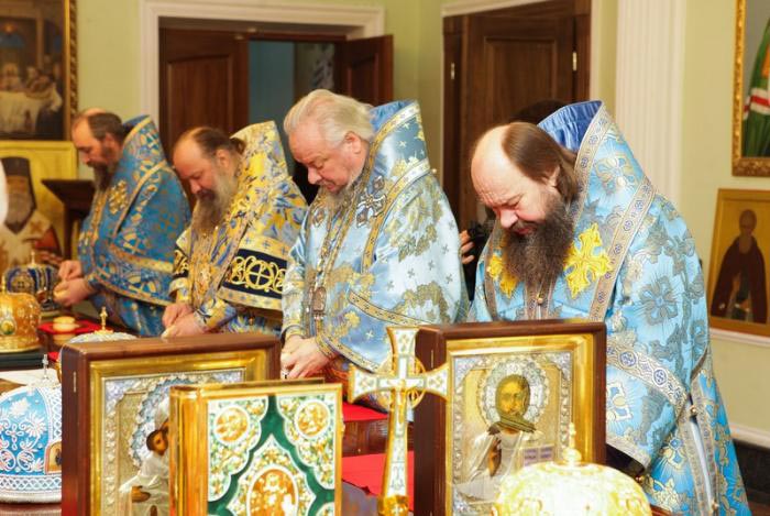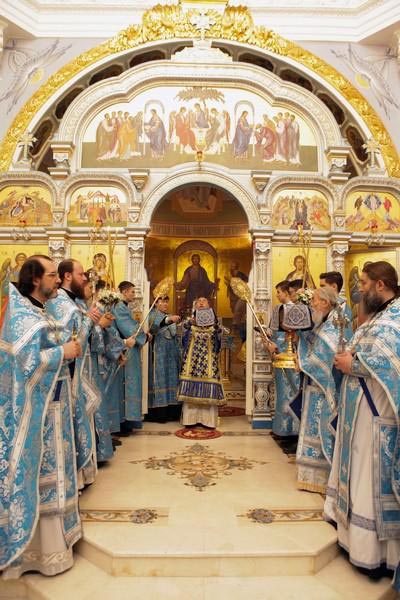 В собор к праздничному богослужению для молитвенного поклонения и духовного укрепления верующих был доставлен ковчег с частицей мощей святителя и чудотворца Николая, архиепископа Мир Ликийских.
