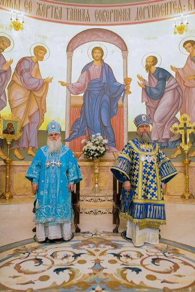 Главам Митрополичьих округов сослужили: архиепископ Уральский и Актюбинский Антоний, архиепископ Чимкентский и Таразский Елевферий, викарий Астанайской епархии епископ Талдыкорганский Нектарий, епископ Павлодарский и Экибастузский Варнава, епископ Карагандинский и Шахтинский Севастиан, епископ Усть-Каменогорский и Семипалатинский Амфилохий, епископ Душанбинский и Таджикистанский Питирим, епископ Бишкекский и Кыргызстанский Даниил, епископ Кокшетауский и Акмолинский Серапион, епископ Петропавловский и Булаевский Владимир; духовенство Ташкентской епархии, священнослужители, прибывшие с архипастырями.
