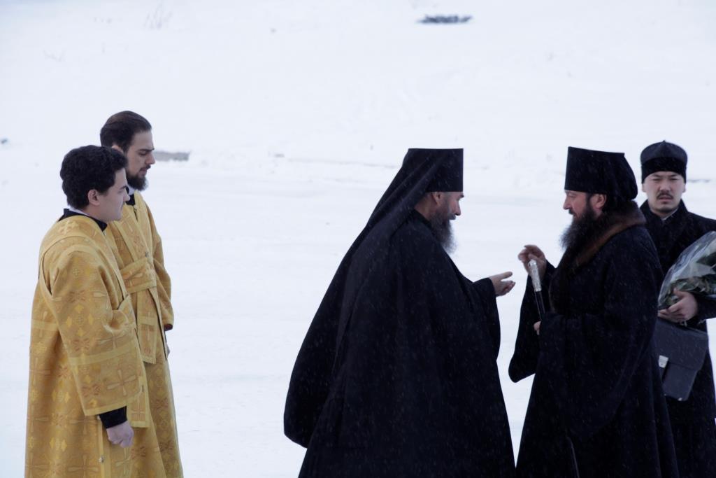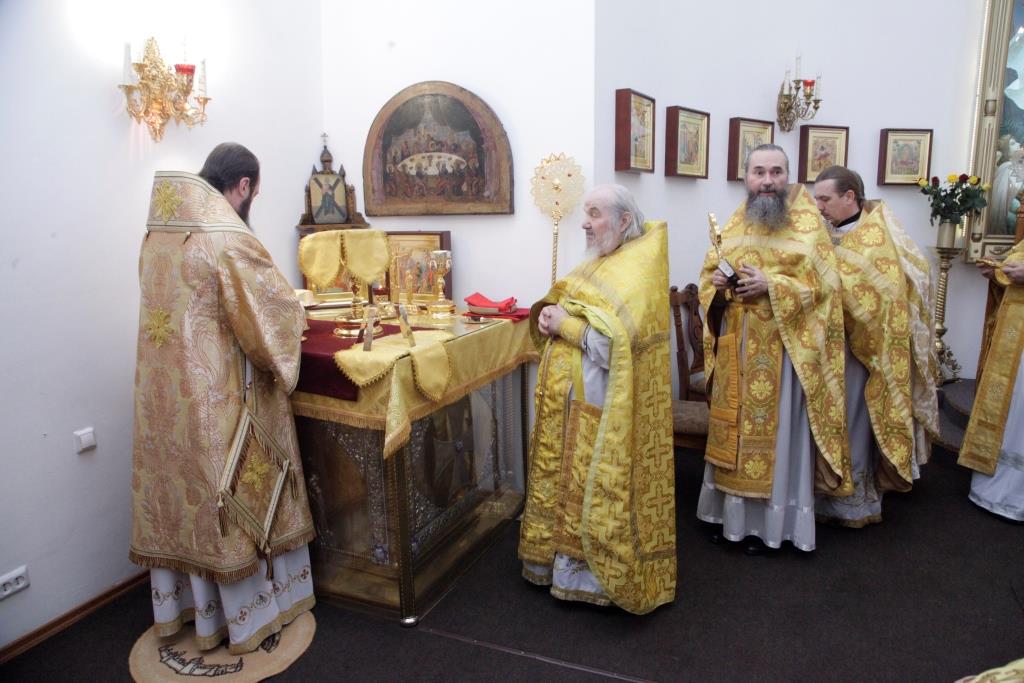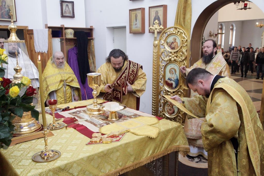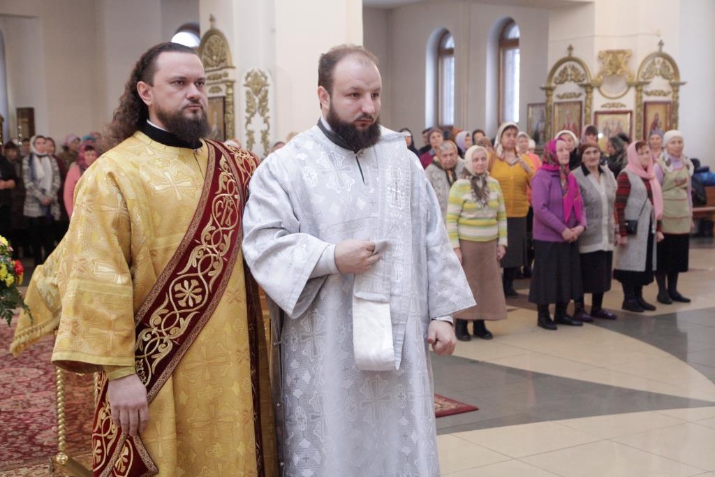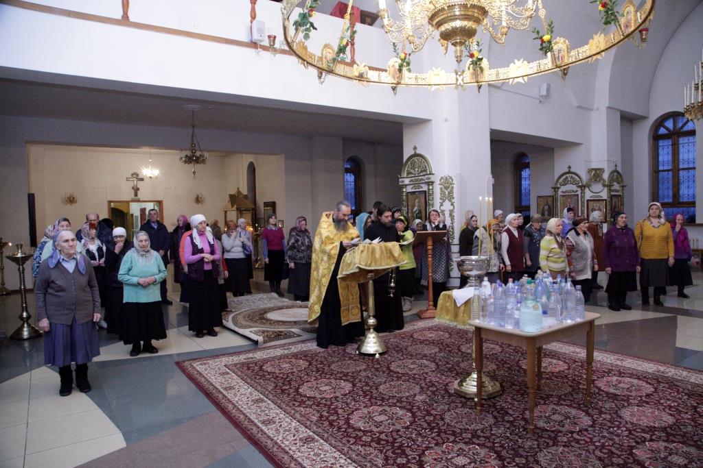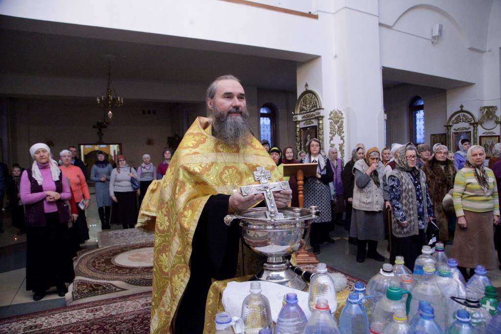 Божественная Литургия была предварена служением молебного пения с водоосвящением, которое совершил ключарь собора иеромонах Никодим (Авдеев).
