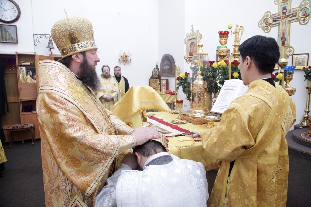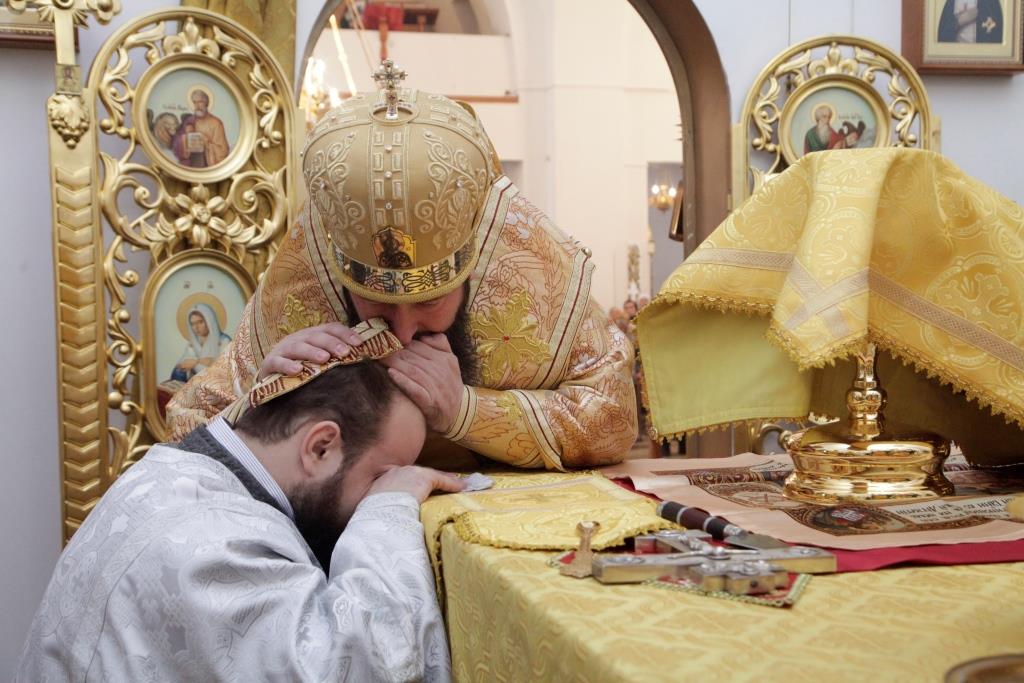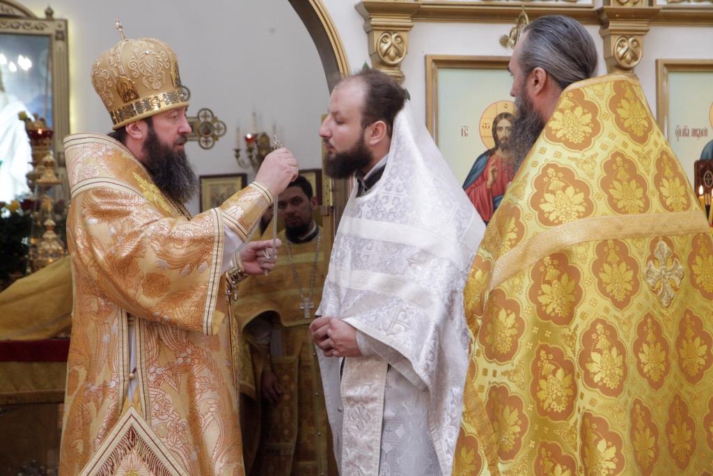 За Божественной Литургией Преосвященнейший Владыка рукоположил клирика Андреевского собора диакона Алексия Горбунова во священный сан пресвитера.