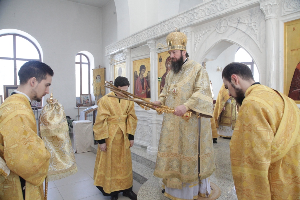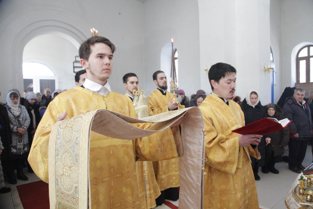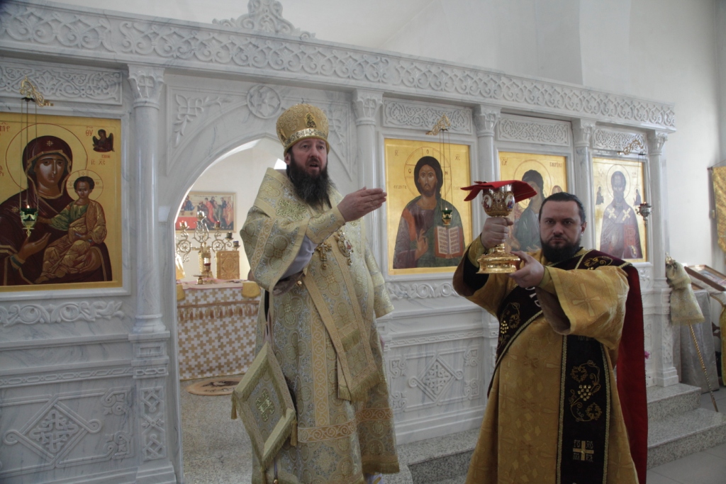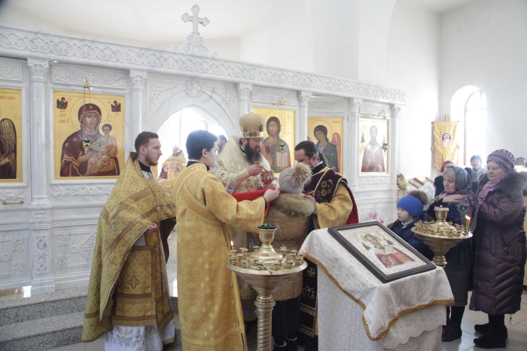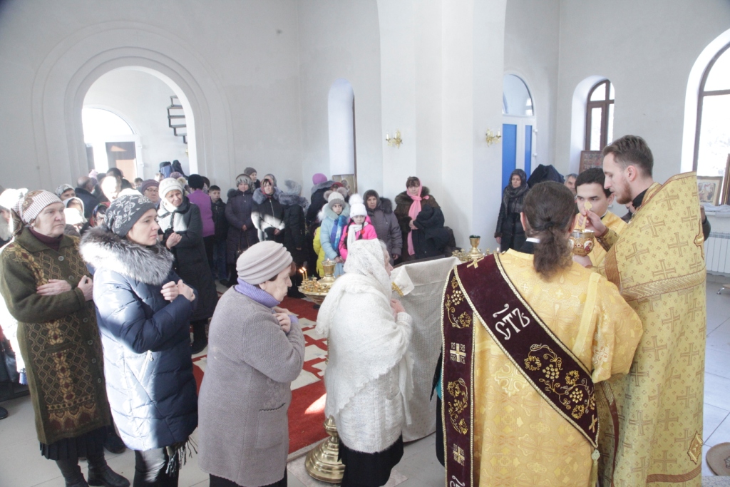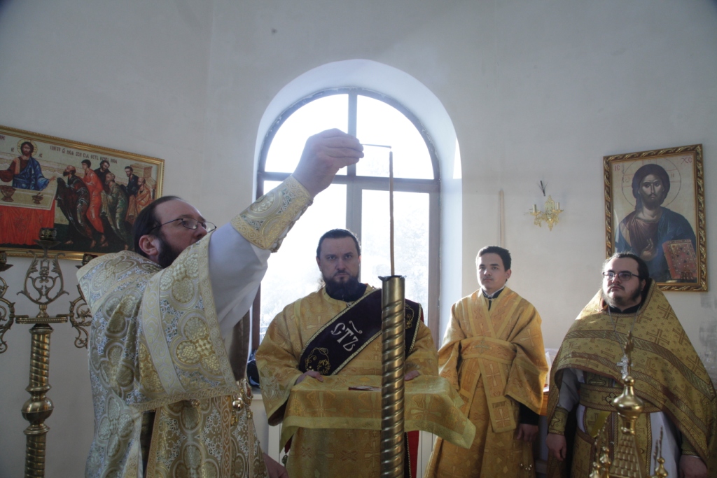 Песнопения чина освящения и Божественной Литургии исполнял сводный хор под управлением регента Ю. Хохряковой. Перед причастием мирян проповедовал священник Антоний Плотников.