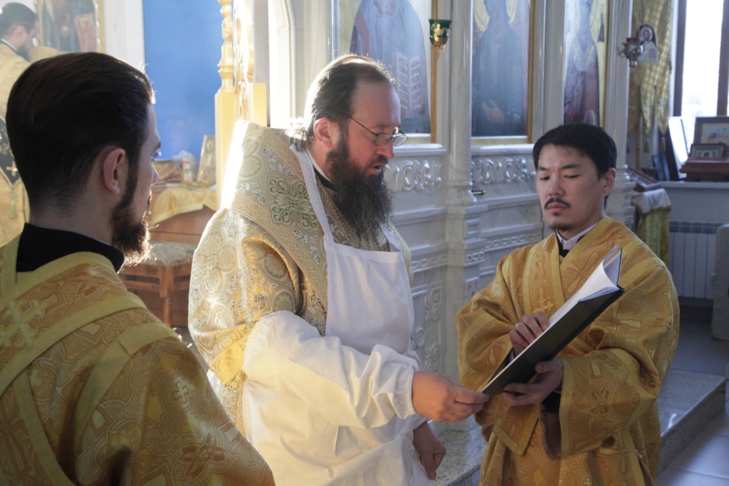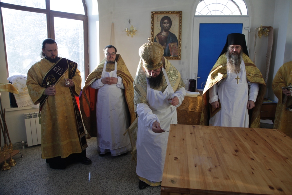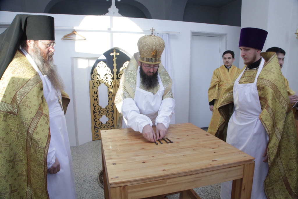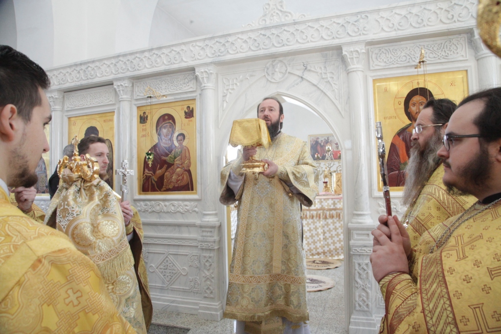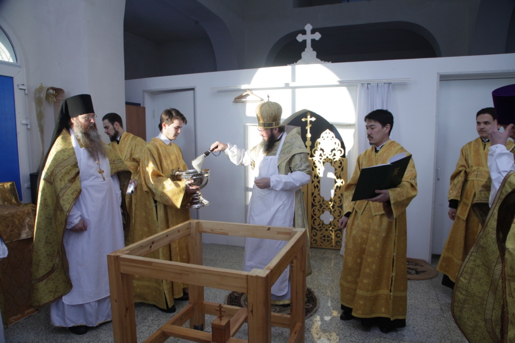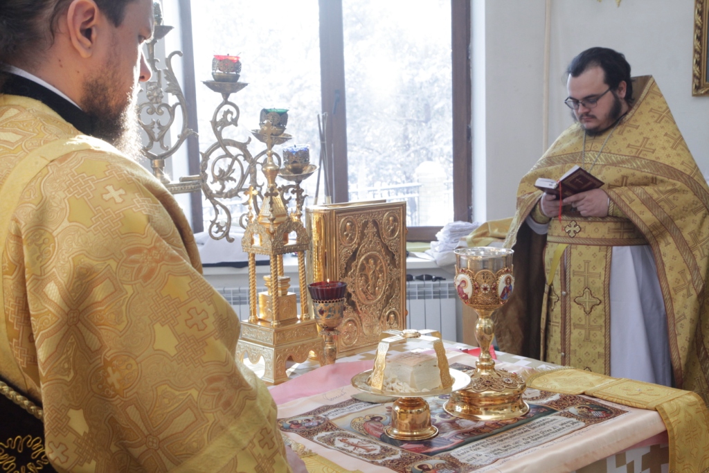 Песнопения чина освящения и Божественной Литургии исполнял сводный хор под управлением регента Ю. Хохряковой. Перед причастием мирян проповедовал священник Антоний Плотников.