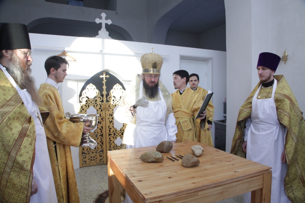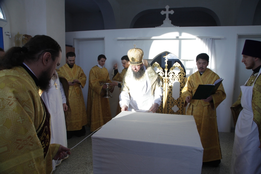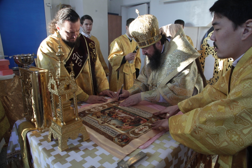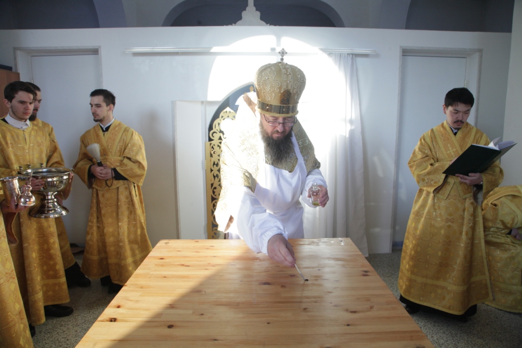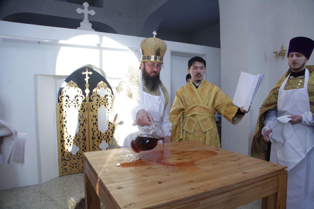 «Освящение храма сродни таинству Крещения, сродни рождению человека в новую жизнь во Христе; многократно призывается имя Божие, стены храма помазываются святым Миром и окропляются святой водой. Божественная Литургия, следующая за освящением, торжественно свидетельствует о том, что на небосклоне Церкви Христовой зажглась еще одна яркая звезда – Божий храм, святое место молитв и Евхаристии, место собрания всей христианской общины, место, где рождаются к духовной жизни новые православные христиане.