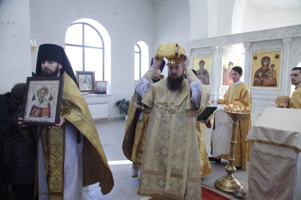 За богослужением молились: благочинный Семипалатинского церковного округа протоиерей Феодор Проскурин, прихожане, паломники и благотворители Никольского храма.