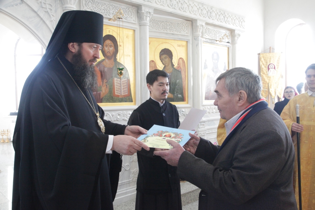 Праздничное Богослужение завершилось многолетием Святейшему Патриарху Московскому и всея Руси Кириллу, Высокопреосвященнейшему митрополиту Астанайскому и Казахстанскому Александру, Преосвященнейшему епископу Амфилохию, духовенству, общине и всем православным христианам.