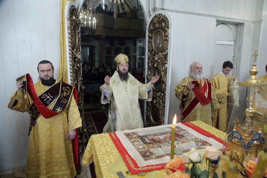 В завершение богослужения было совершено славление святой великомученице Варваре. После Божественной Литургии епископ Амфилохий обратился к собравшимся со словами Архипастырского наставления.