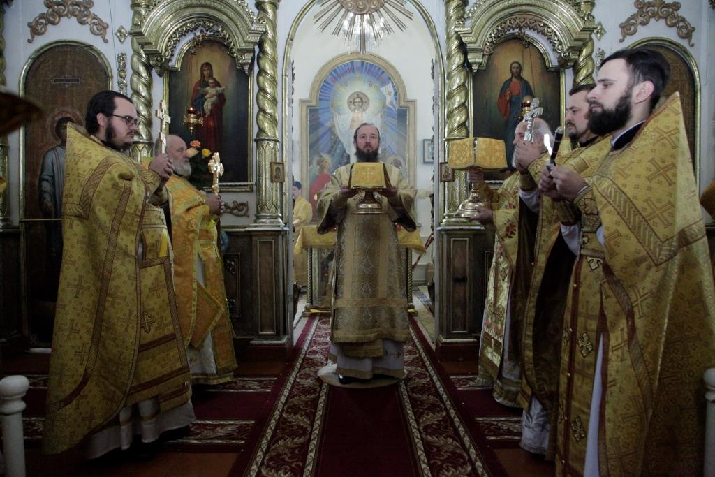 В воскресный день Управляющий Усть-Каменогорской и Семипалатинской епархией Преосвященнейший епископ Амфилохий возглавил служение Божественной Литургии святителя Иоанна Златоуста в соборе в честь Воскресения Христова города Семипалатинска. Архипастырю сослужили: благочинный Семипалатинского церковного округа, настоятель собора митрофорный протоиерей Феодор Проскурин, клирик собора протоиерей Михаил Безродний, настоятель Владимирского храма села Новая Шульба иерей Евгений Нектеров, настоятель Казанского храма города Курчатова иерей Димитрий Нектеров, клирик Заменско-Абалацкого женского монастыря города Семипалатинска иеромонах Мануил (Чабанов), протодиакон Андрей Дудник, диакон Николай Белоконь.