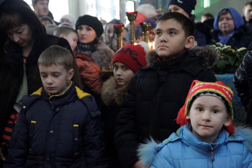 Песнопения Божественной Литургии исполнял хор Воскресенского собора (регент – Ю. Хохрякова). За воскресным богослужением молились прихожане и паломники второго кафедрального храма епархии, преподаватели и воспитанники приходской воскресной школы, представители Семипалатинского казачества.