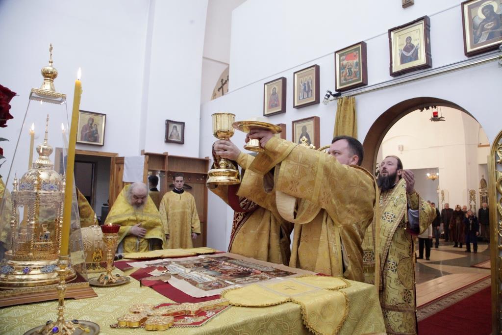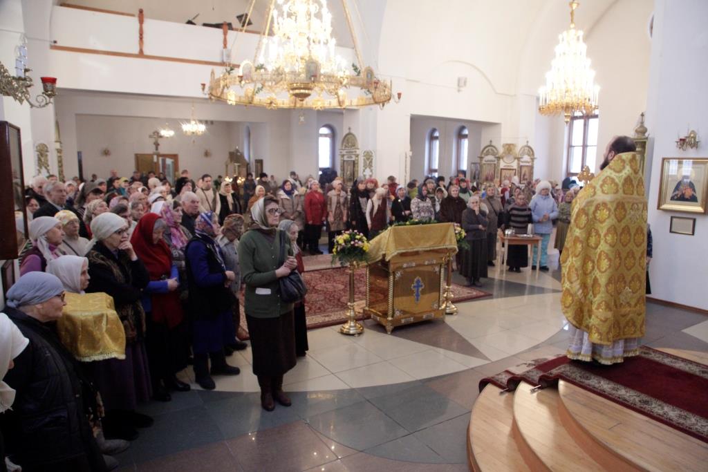 За праздничным богослужением молились прихожане и паломники кафедрального собора, сотрудники епархиального управления, насельники Свято-Троицкой мужской обители. Песнопения Литургии исполнял хор под управлением Н.Романцовой.