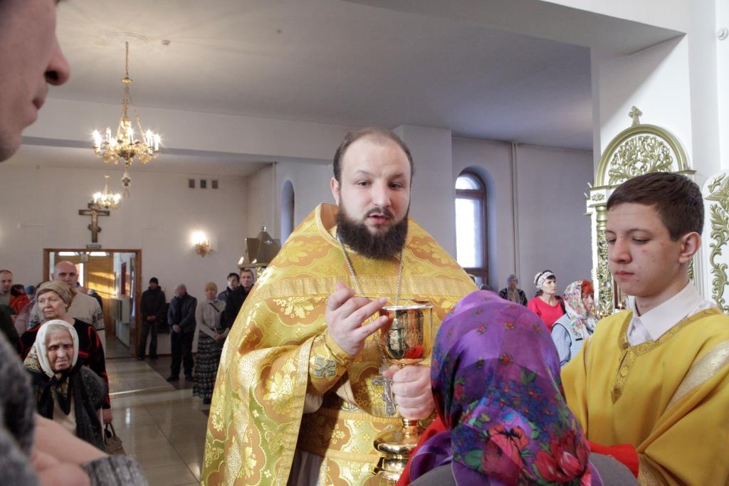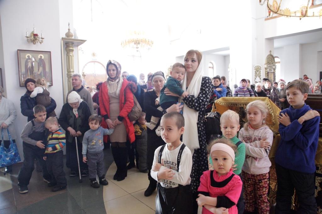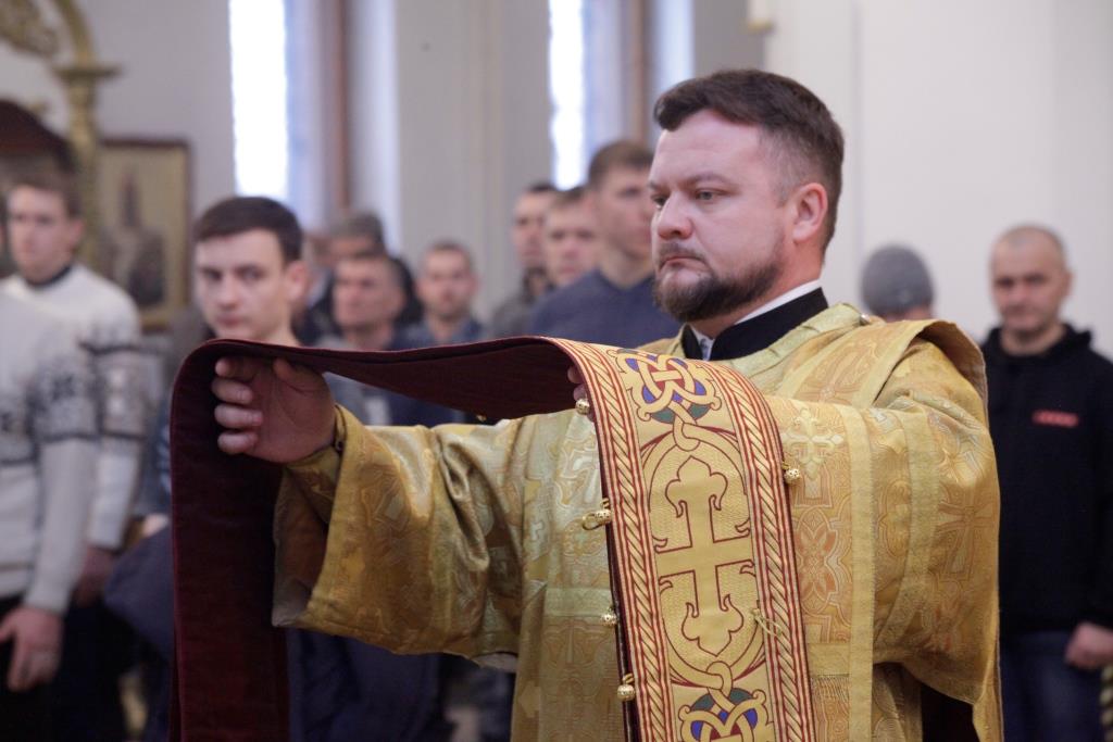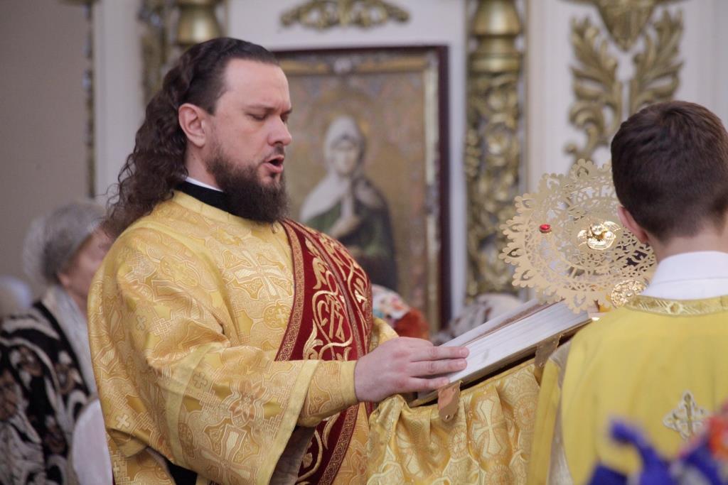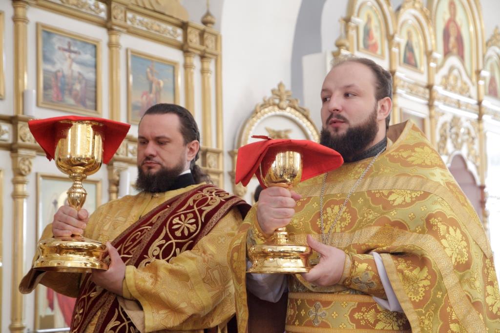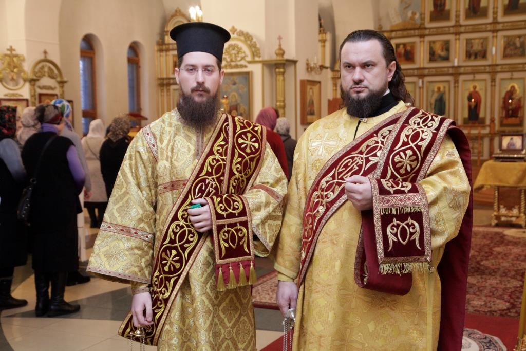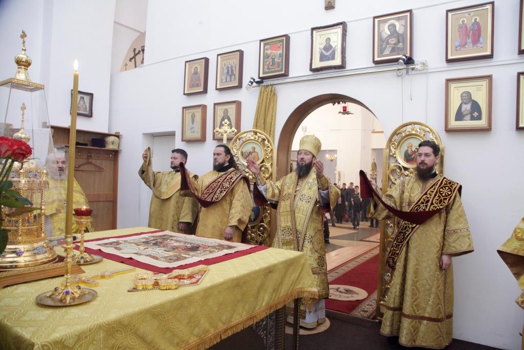 Песнопения Недели святых отец и Божественной Литургии исполнял Архиерейский хор под управлением В. Федоровой. За Литургией молились и причащались Святых Христовых Таин прихожане и паломники Андреевского кафедрального собора, сотрудники епархиального управления, насельники Свято-Троицкого мужского монастыря. Перед причастием мирян проповедовал священник Алексий Горбунов.