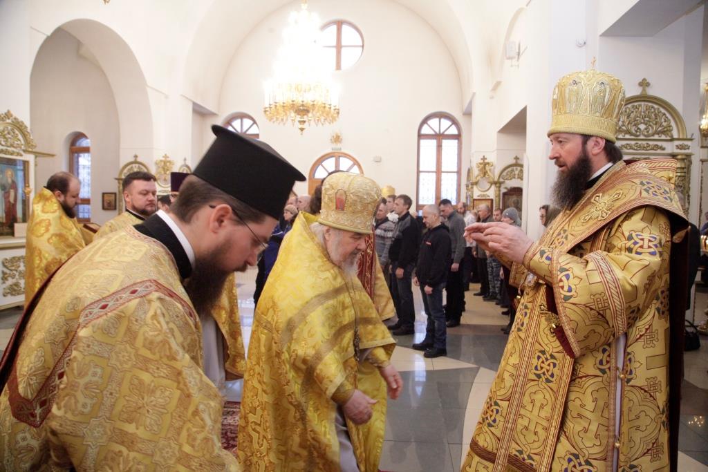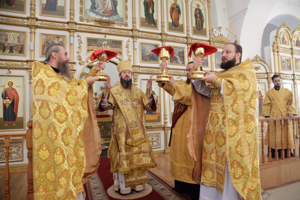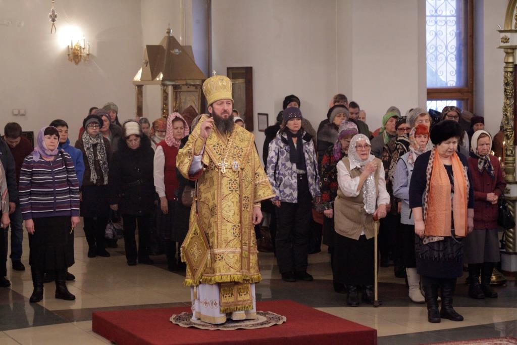 В последнее воскресение уходящего года Управляющий Усть-Каменогорской и Семипалатинской епархией Преосвященнейший епископ Амфилохий возглавил служение Божественной Литургии святителя Иоанна Златоуста в Свято-Андреевском кафедральном соборе города Усть-Каменогорска. Его Преосвященству сослужили: духовник епархии архимандрит Спиридон (Теплухин), ключарь собора иеромонах Никодим (Авдеев), руководитель епархиальной канцелярии иерей Константин Дьяков, настоятель Екатерининского храма поселка Новая Бухтарма иерей Алексий Горбунов, протодиакон Андрей Дудник, иеродиакон Мефодий (Шевчук), диакон Владимир Лаврешин.
