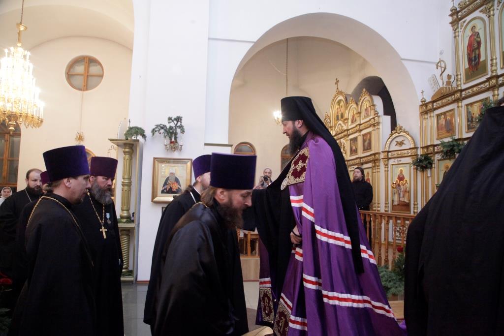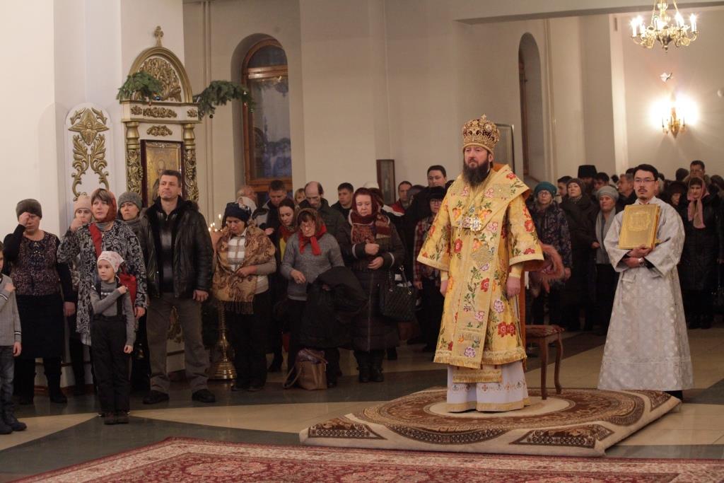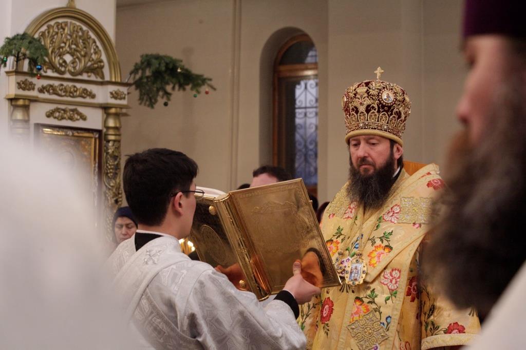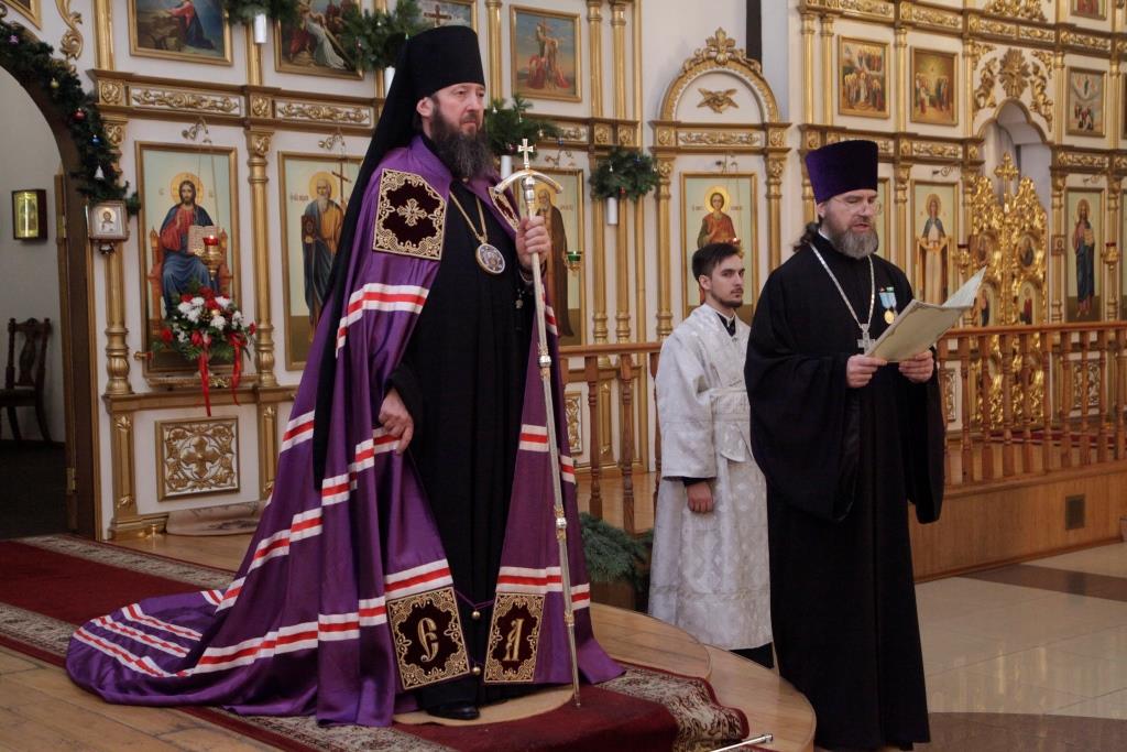 По окончании Богослужения благочинный Усть-Каменогорского церковного округа иерей Алексий Анищенко огласил Рождественское послание епископа Амфилохия духовенству, монашествующим и боголюбивой пастве Усть-Каменогорской и Семипалатинской епархии.