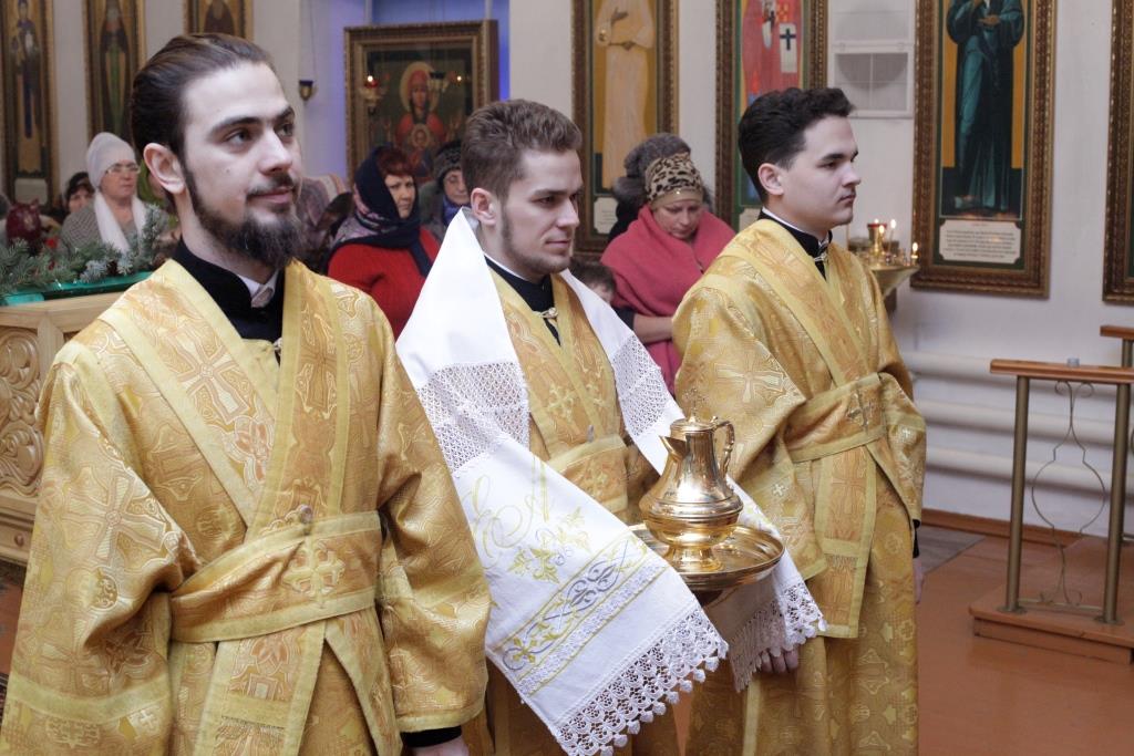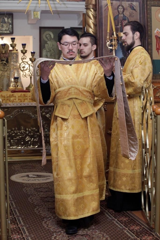 За Божественной Литургией молились: секретарь Усть-Каменогорской епархии иподиакон И.О. Кван, прихожане и паломники Богородице-Рождественского храма, преподаватели и воспитанники приходской воскресной школы. Праздничные песнопения исполнял квартет Архиерейского хора кафедрального собора под управлением регента Н. Романцовой.