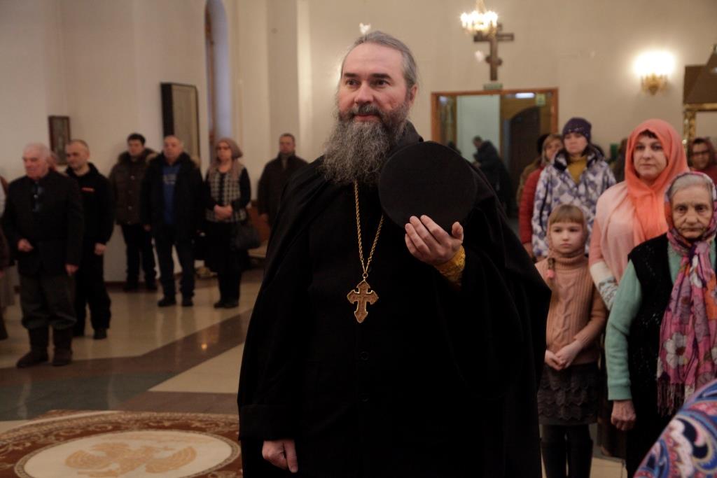 После прочтения Евангельской притчи о мытаре и фарисее (Лк.18:10-14) епископ Амфилохий обратился к прихожанам со словами проповеди.