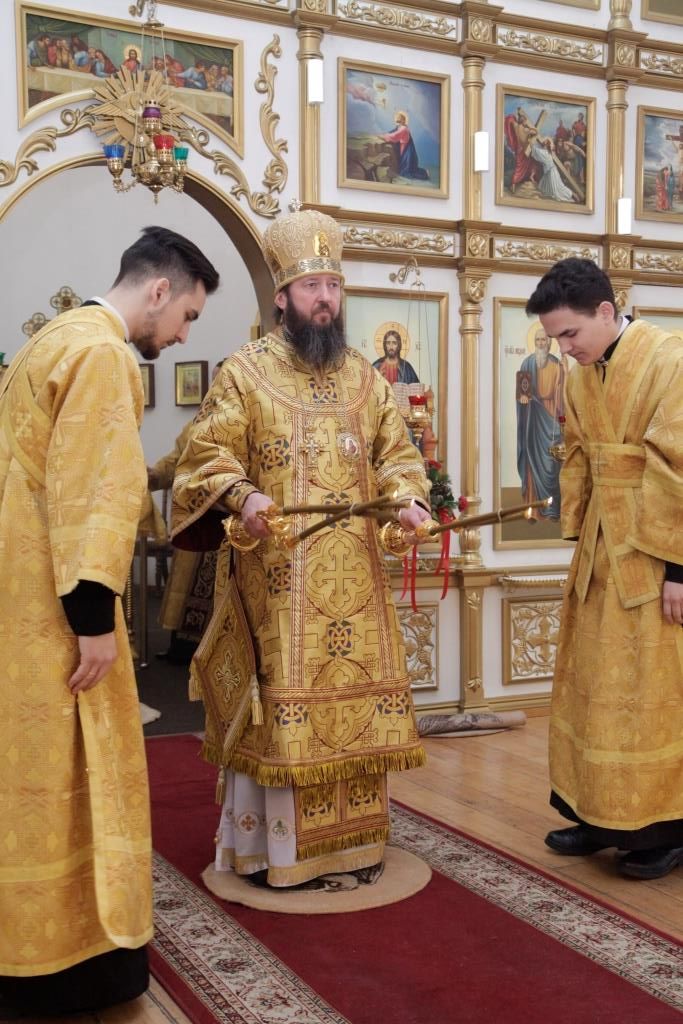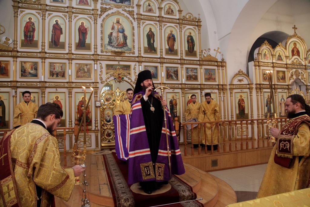 Управляющий Усть-Каменогорской и Семипалатинской епархией Преосвященнейший епископ Амфилохий возглавил служение Божественной Литургии святителя Иоанна Златоуста в кафедральном соборе во имя святого апостола Андрея Первозванного города Усть-Каменогорска. Архипастырю сослужили: духовник епархии архимандрит Спиридон (Теплухин), ключарь кафедрального собора иеромонах Никодим (Авдеев), клирик собора иерей Алексий Клепиков, протодиакон Андрей Дудник, иеродиакон Мефодий (Шевчук), диакон Владимир Лаврешин. Песнопения первой подготовительной недели к Великому посту и Божественной Литургии исполнял Архиерейский хор под управлением регента Н. Романцовой.