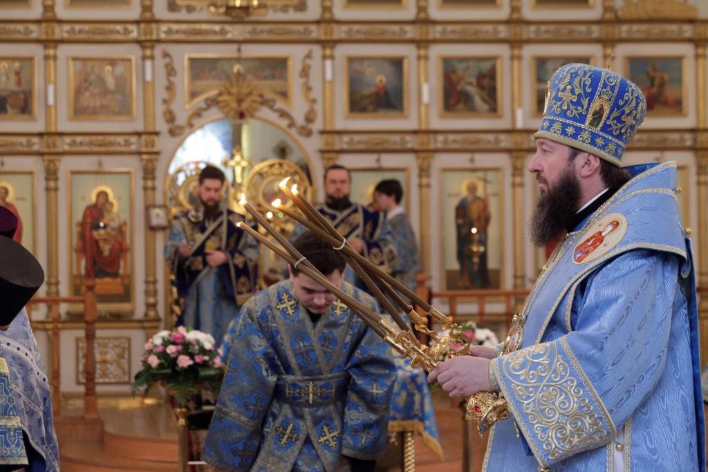 Преосвященнейший епископ Усть-Каменогорский и Семипалатинский Амфилохий совершил Божественную Литургию святителя Иоанна Златоуста в кафедральном соборном храме святого апостола Андрея Первозванного города Усть-Каменогорска. В праздничный день Его Преосвященству сослужили: духовник епархии архимандрит Спиридон (Теплухин), ключарь собора иеромонах Никодим (Авдеев), клирики собора иерей Алексий Клепиков, иерей Константин Дьяков, протодиакон Андрей Дудник, иеродиакон Мефодий (Шевчук), диакон Владимир Лаврешин. Песнопения праздника Сретения Господня и Божественной Литургии исполнял хор кафедрального собора под управлением регента Н. Романцовой.
