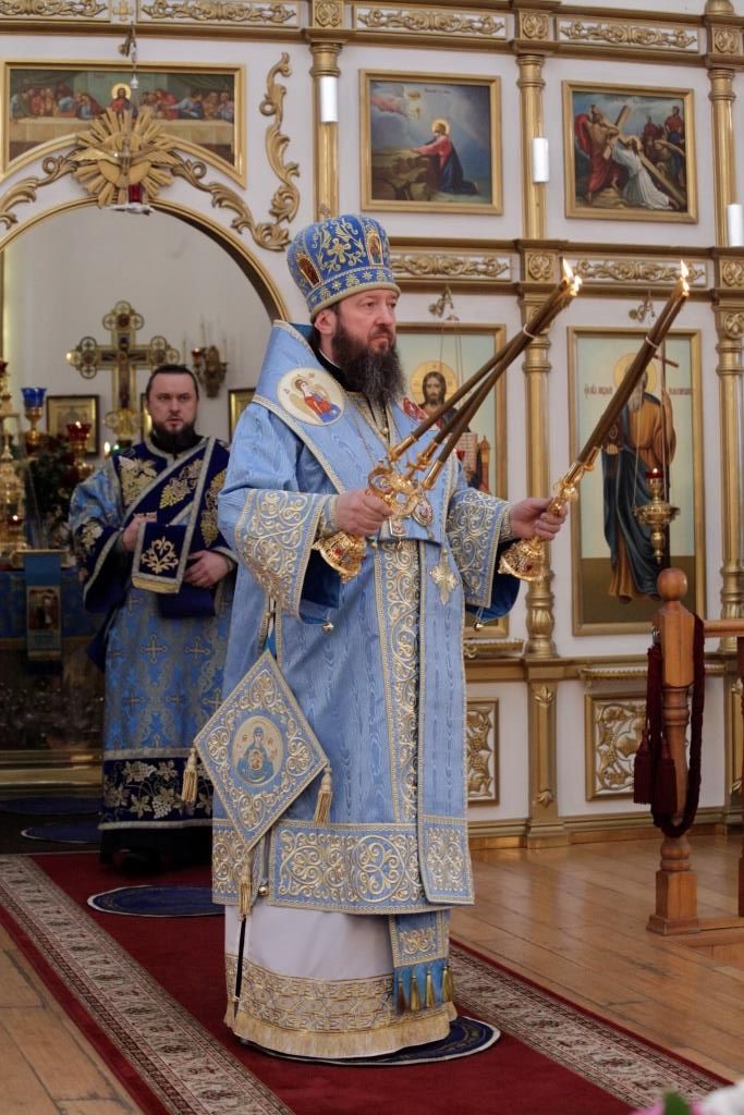 После отпуста Божественной Литургии было совершено славление празднику, после чего епископ Амфилохий обратился к молящимся со словом Архипастырского наставления.