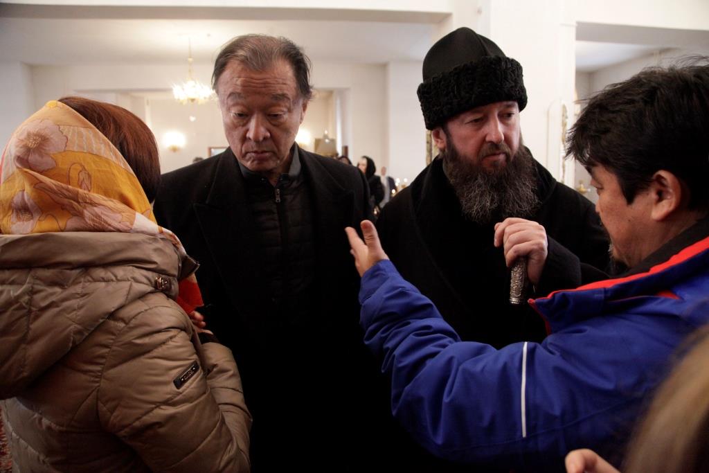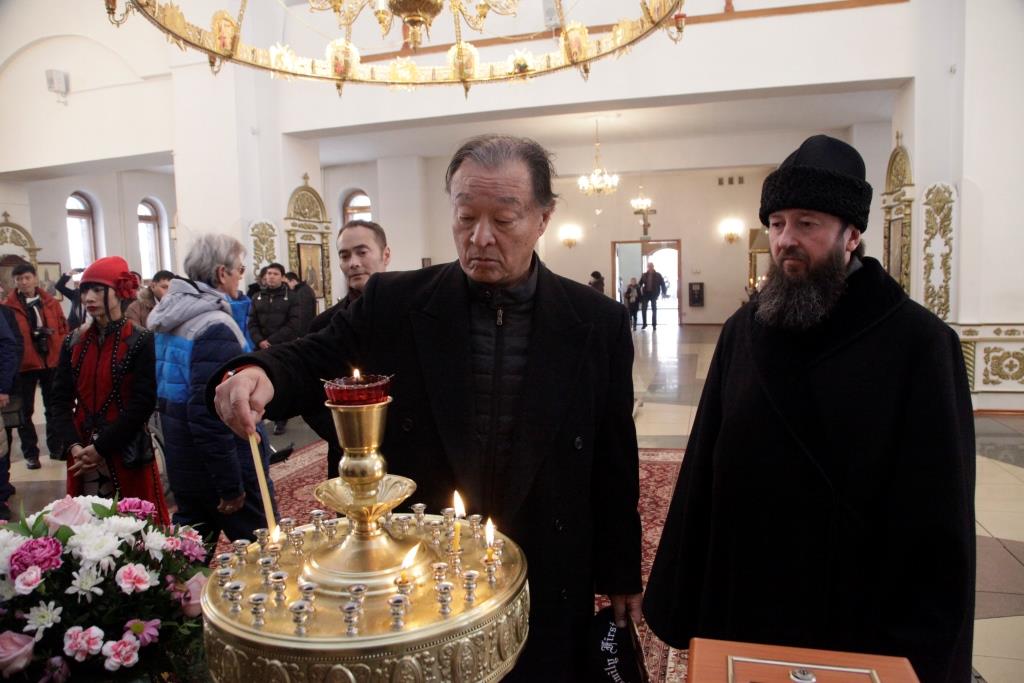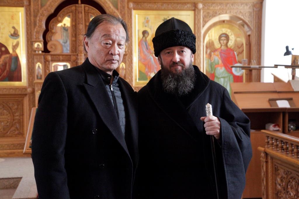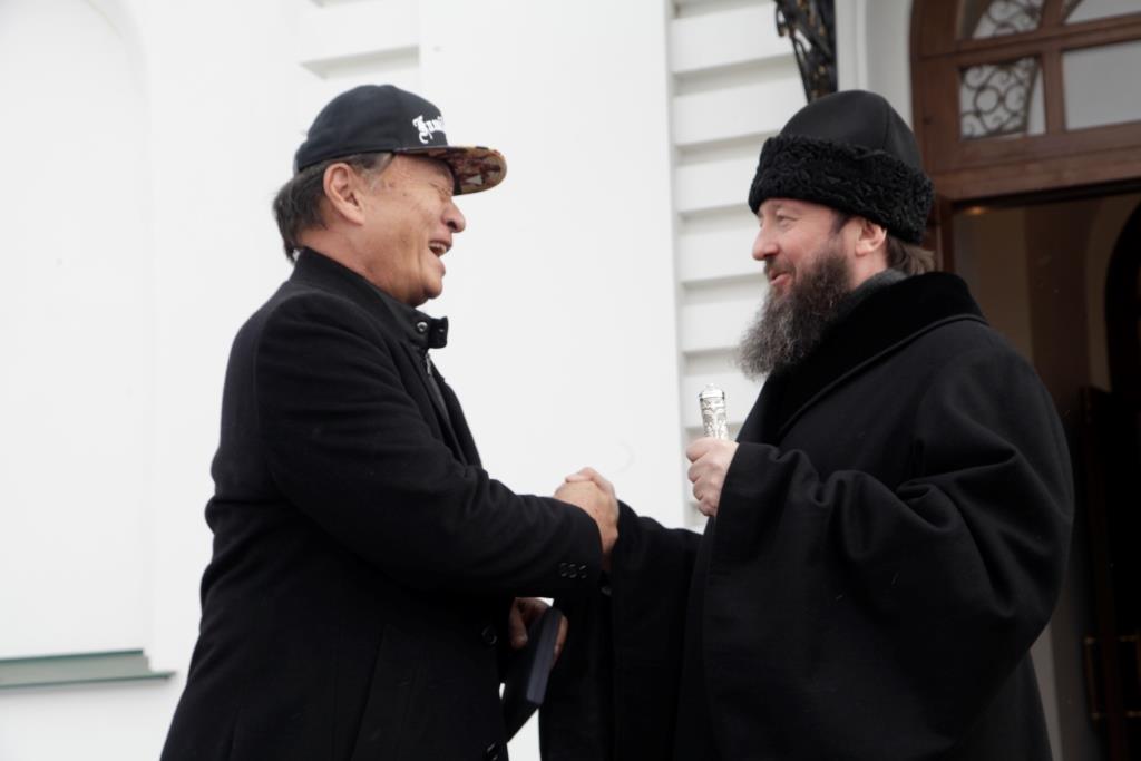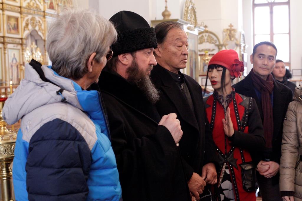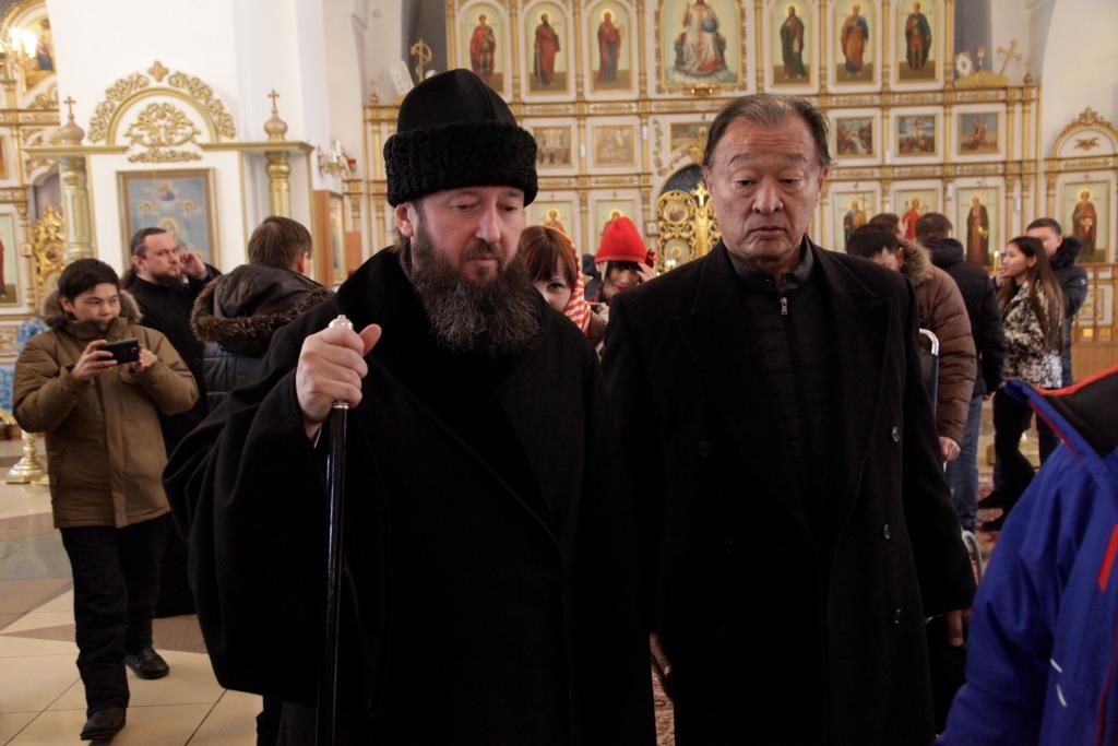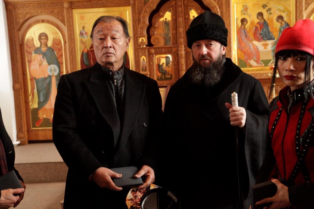 После окончания богослужения главный храм Рудного Алтая посетили высокие гости – всемирно известные актеры К-Х. Тагава, Б. Лин, Э. Робертс, М. Дакаскос и М. Мэдсен. Гостей сопровождали представители государственной власти – сотрудники областного и городского акиматов, управления внутренней политики Восточно-Казахстанской области, представители СМИ. Зарубежные гости прибыли в Восточный Казахстан для участия в съемках специального фильма про регион. Картину планируется транслировать за рубежом. В рамках визита и съемок запланировано посещение ряда районов и достопримечательностей края.