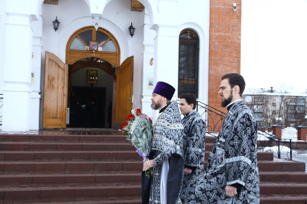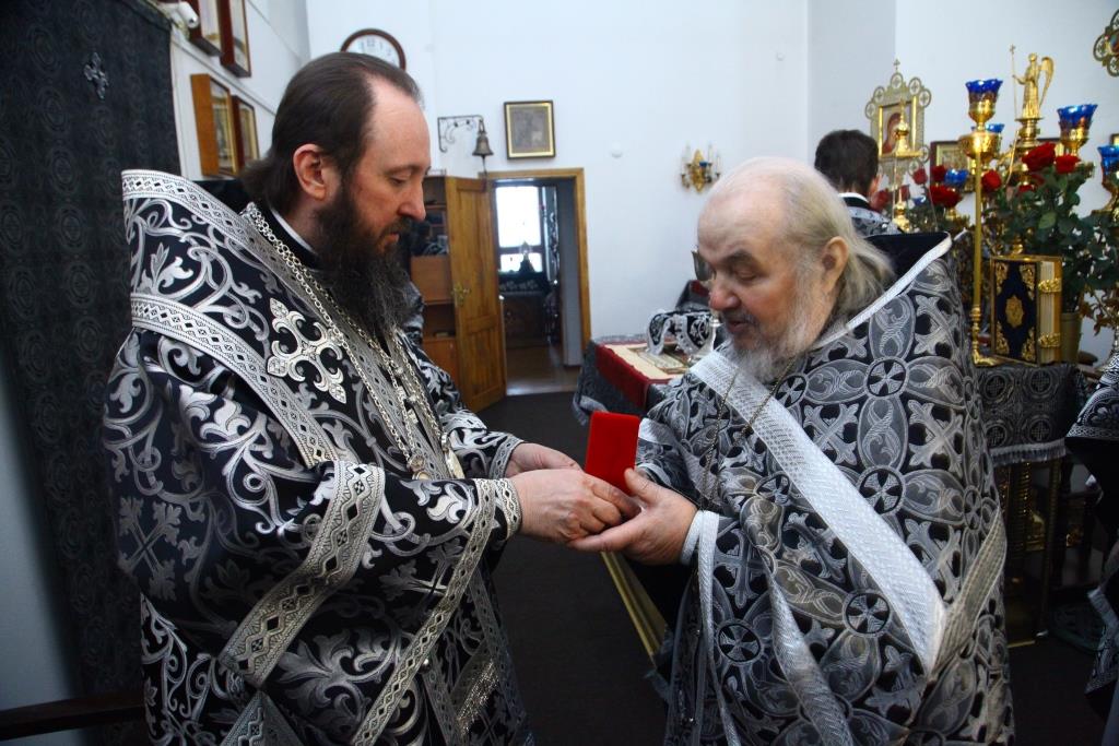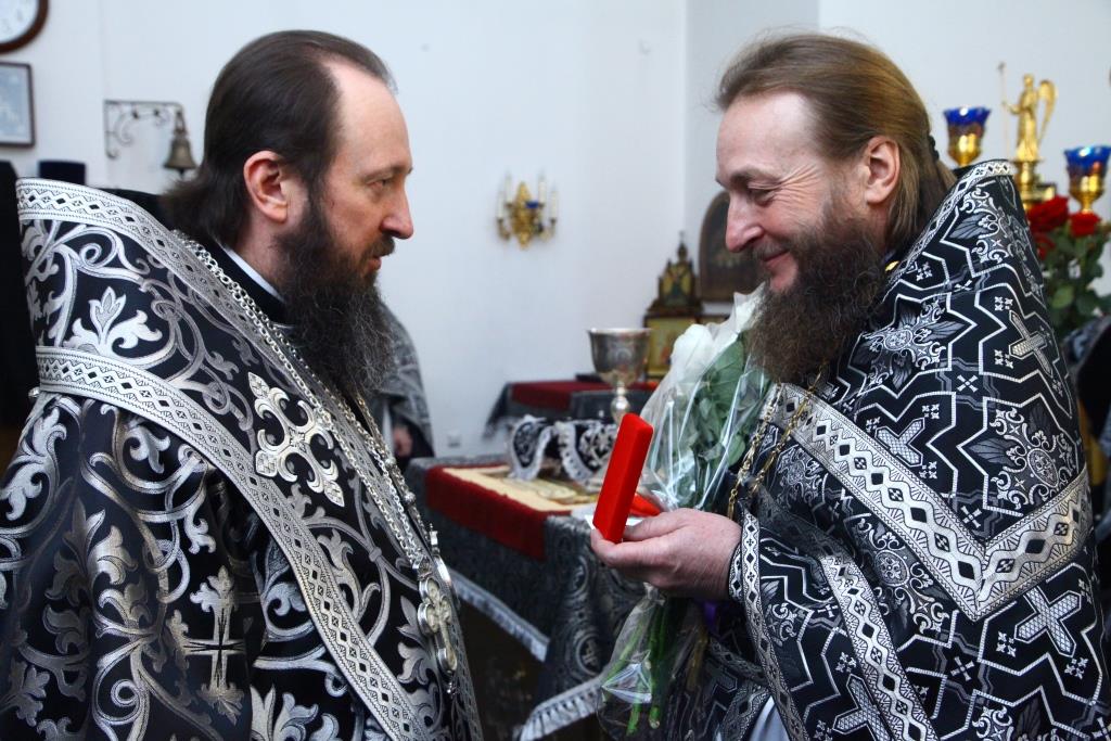 За богослужением епископ Амфилохий поздравил настоятеля Богородице-Рождественского храма города Усть-Каменогорска протоиерея Евгения Яганова с 20-летием рукоположения в сан пресвитера и вручил ему Патриаршую награду – медаль «В память 100-летия восстановления Патриаршества в Русской Православной Церкви». Во внимание к многолетним трудам на благо Святого Православия старейший клирик епархии архимандрит Спиридон (Теплухин) так же был удостоен медали в память 100-летия восстановления Патриаршества.