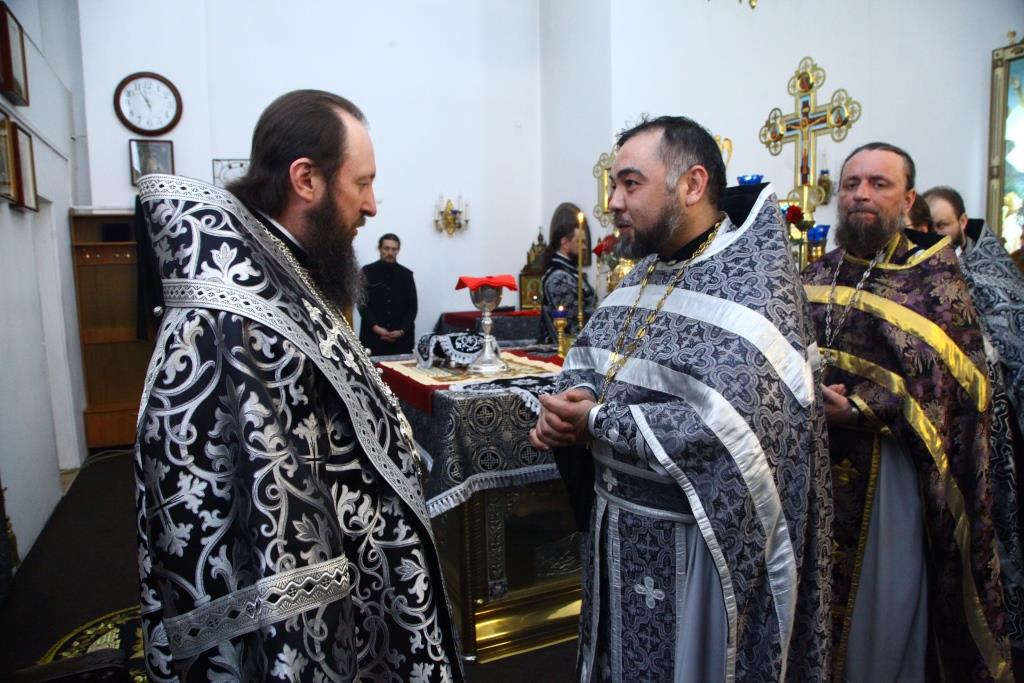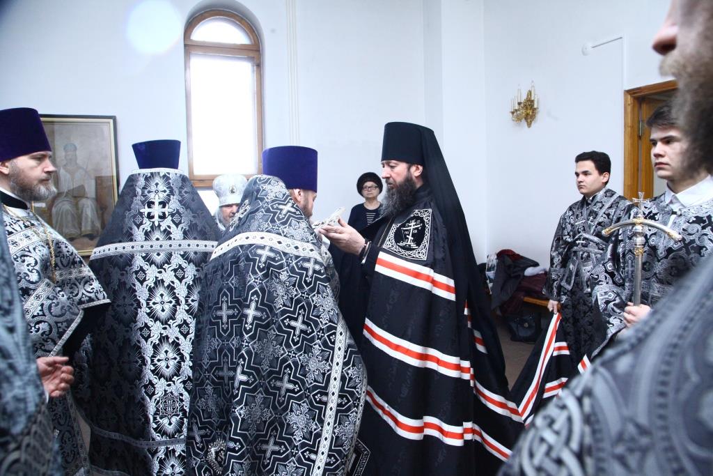 Перед началом богослужения духовник епархии архимандрит Спиридон (Теплухин) совершил чин исповеди духовенства.