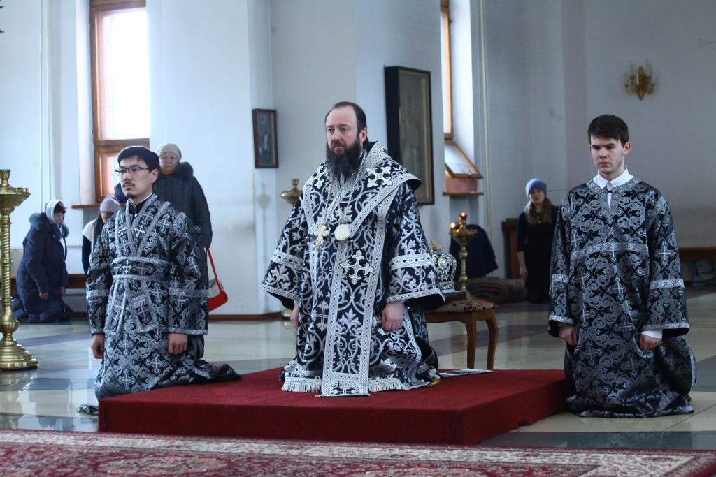 Песнопения Божественной Литургии Преждеосвященных Даров исполнял хор кафедрального собора под управлением регента Н. Романцовой. За Богослужением молились прихожане Андреевского собора и братия Свято-Троицкого мужского монастыря. Перед причастием мирян проповедовал ключарь кафедрального собора.