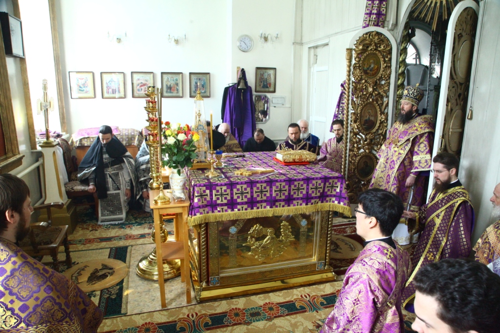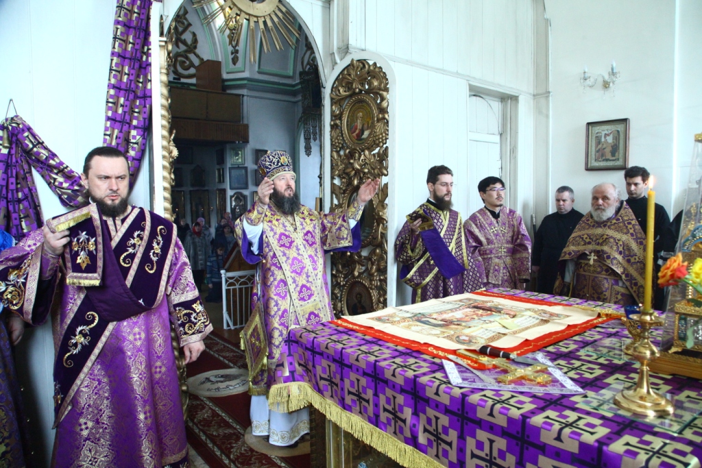 Управляющий Усть-Каменогорской и Семипалатинской епархией Преосвященнейший епископ Амфилохий прибыл с Архипастырским визитом в город Семипалатинск, где возглавил служение Божественной Литургии Преждеосвященных Даров в Спасо-Воскресенском кафедральном соборе. Его Преосвященству сослужили: благочинный Семипалатинского церковного округа, настоятель Воскресенского собора митрофорный протоиерей Феодор Проскурин, протоиерей Михаил Безродний, ключарь собора иерей Евгений Потылицын, протодиакон Андрей Дудник, иеродиакон Мефодий (Шевчук), секретарь епархии диакон Илия Кван.