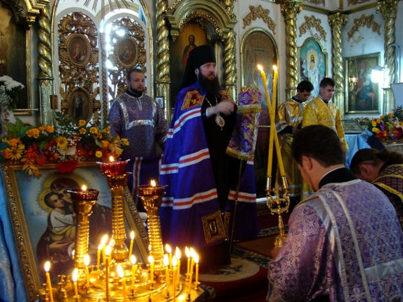 По окончании Божественной литургии Преосвященнейший владыка Амфилохий поздравил духовенство и верующих с праздником Воздвижения, усугубляющимся радостью принесения в Казахстан Животворящего Крестного Древа, и обратился к собравшимся с проповедью.
