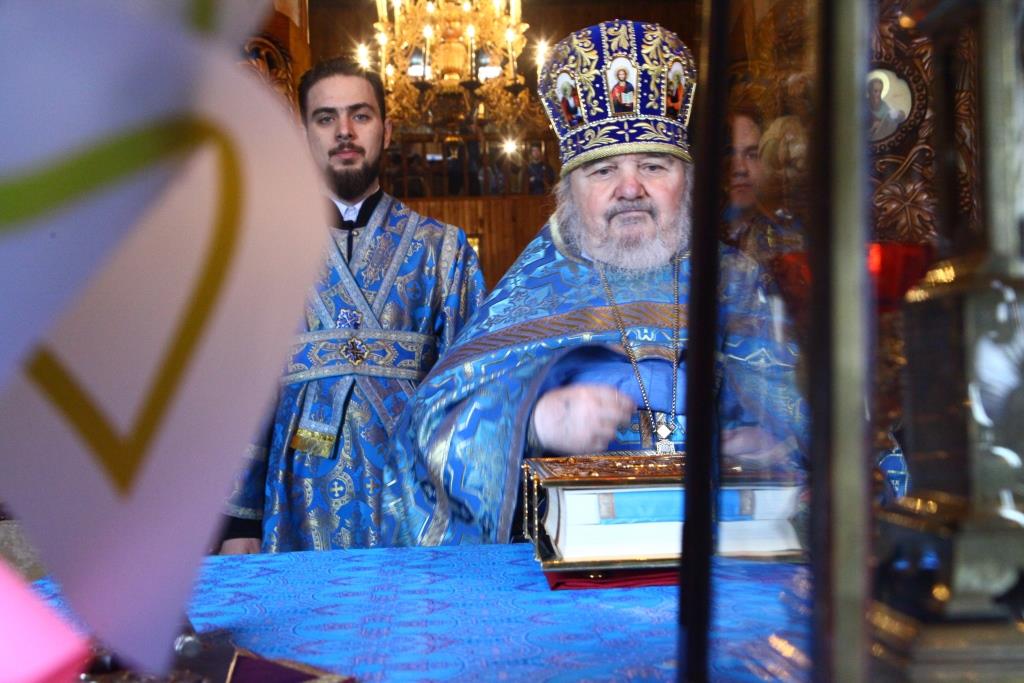 Божественная Литургия завершилась славлением Пресвятой Богородице, по окончании которого Архипастырь поздравил священнослужителей и прихожан с праздником Субботы Акафиста и обратился к собравшимся со словом проповеди.