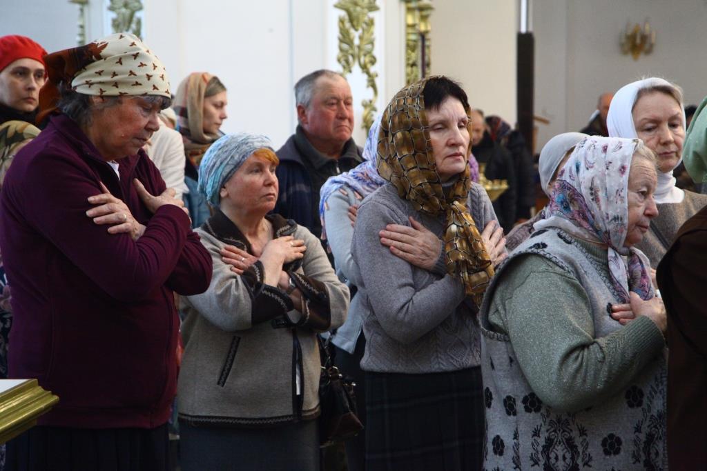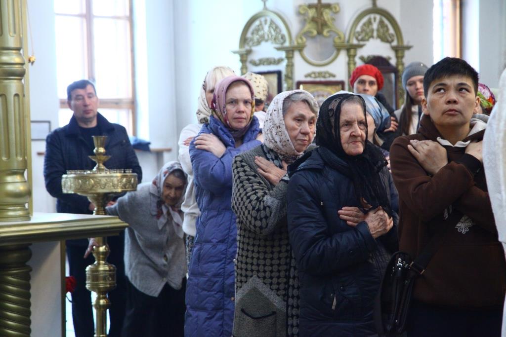 Песнопения Лазаревой субботы исполнял хор Андреевского собора под управлением Н. Романцовой. За богослужением молились прихожане собора, насельники Свято-Троицкого мужского монастыря. Перед причастием мирян проповедовал ключарь кафедрального собора.