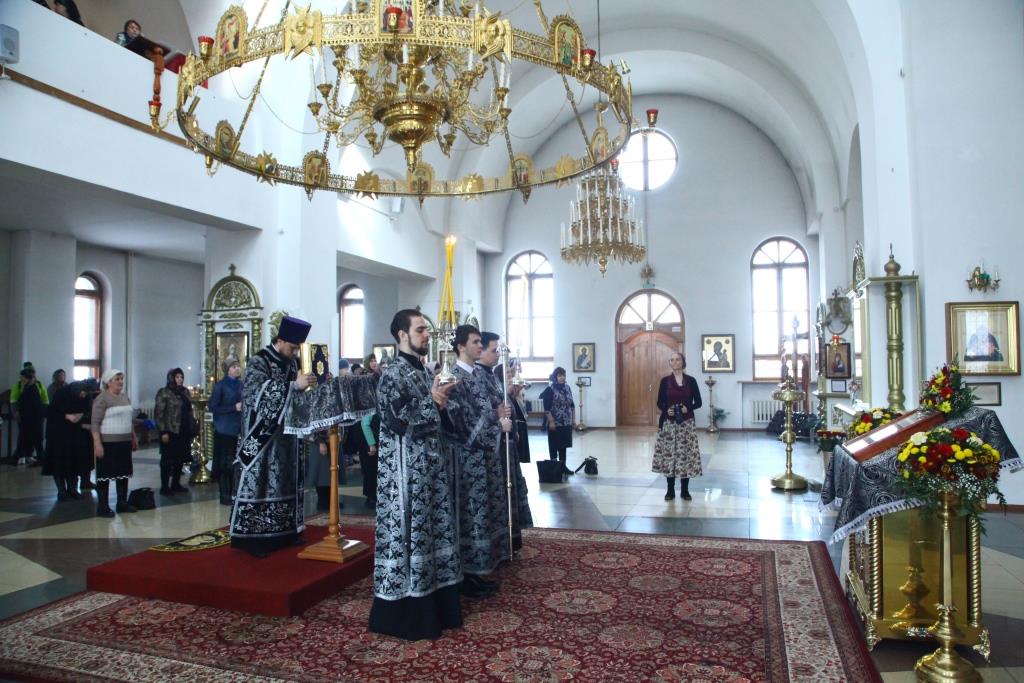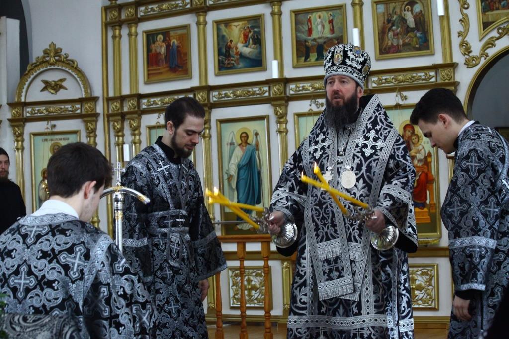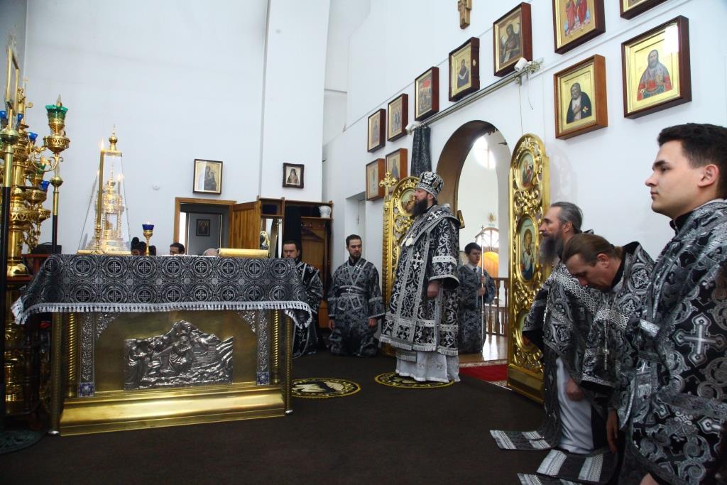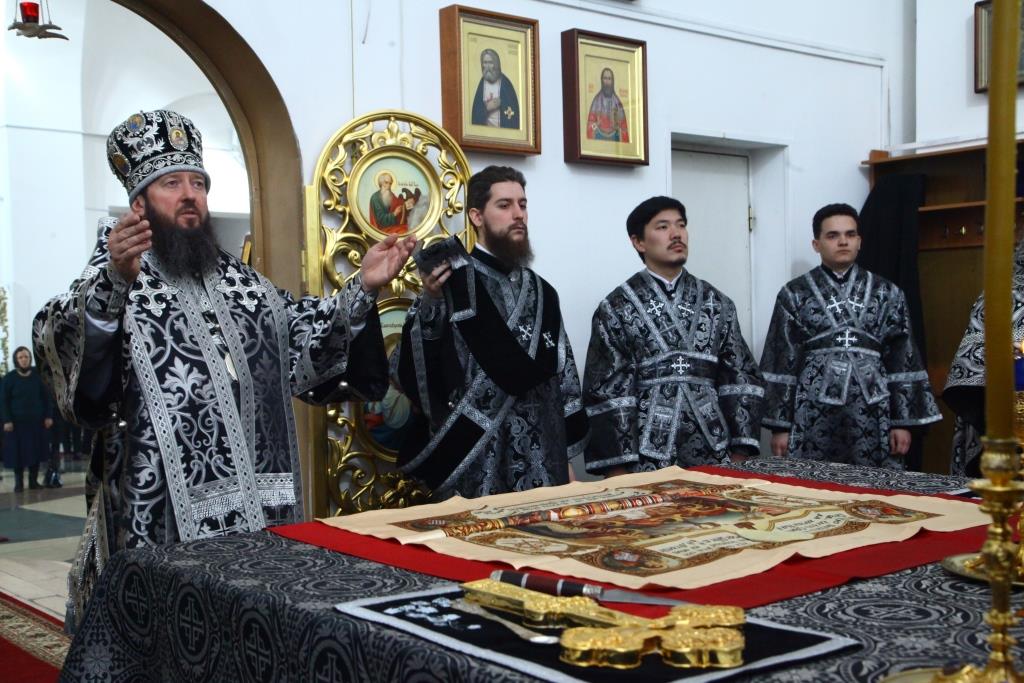 В третий день Страстной седмицы Преосвященнейший епископ Усть-Каменогорский и Семипалатинский Амфилохий возглавил служение Божественной Литургии Преждеосвященных Даров святителя Григория Двоеслова в кафедральном соборе во имя святого апостола Андрея Первозванного города Усть-Каменогорска. Перед Литургией совершались великопостные часы, за которыми, согласно богослужебному уставу, читалось Евангелие от Иоанна.