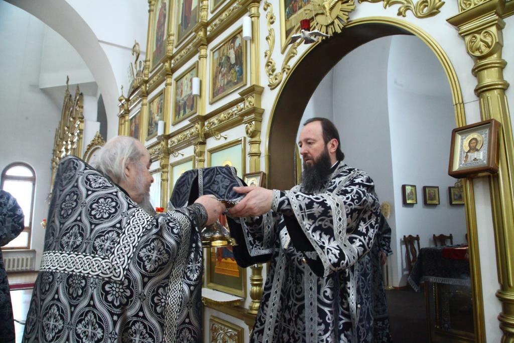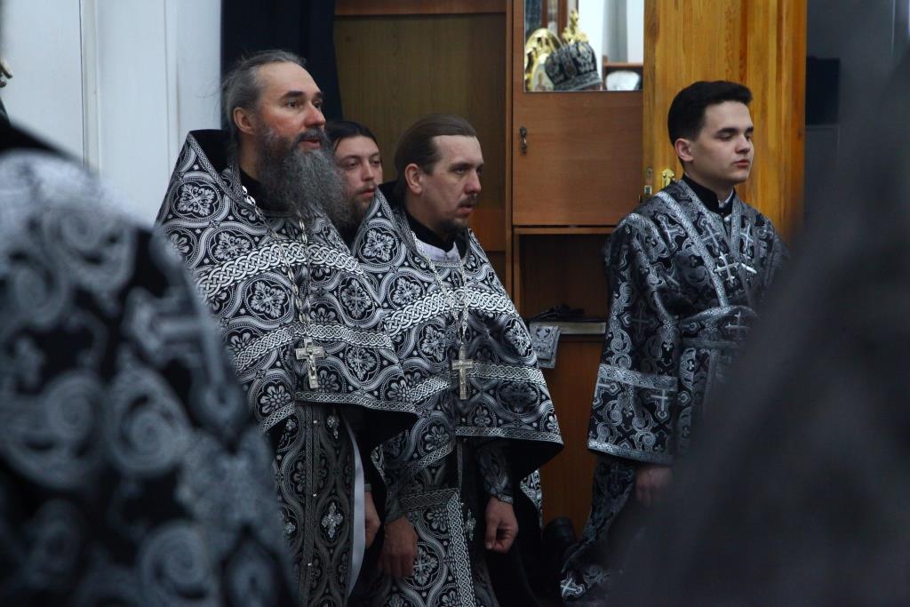 Архипастырю сослужили: духовник епархии архимандрит Спиридон (Теплухин), ключарь кафедрального собора иеромонах Никодим (Авдеев), протоиерей Николай Темирбаев, клирики собора иерей Алексий Клепиков, протодиакон Андрей Дудник, иеродиакон Мефодий (Шевчук), диакон Владимир Лаврешин, секретарь епархии диакон Илия Кван. Песнопения Великой Среды и Литургии Преждеосвященных Даров исполнял хор собора под управлением регента В. Федоровой. За Богослужением молились насельники Свято-Троицкого мужского монастыря и прихожане кафедрального собора.