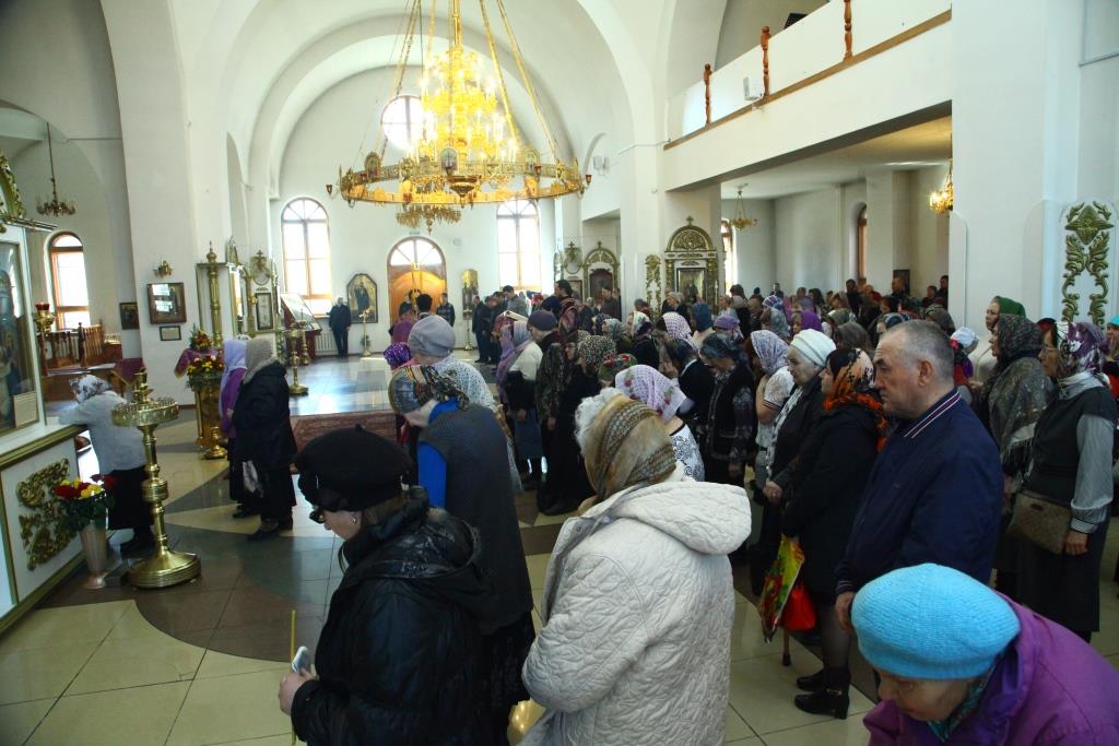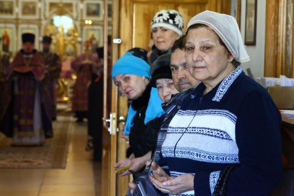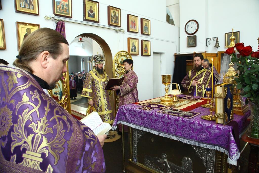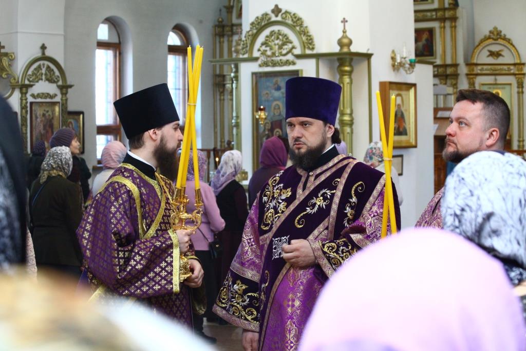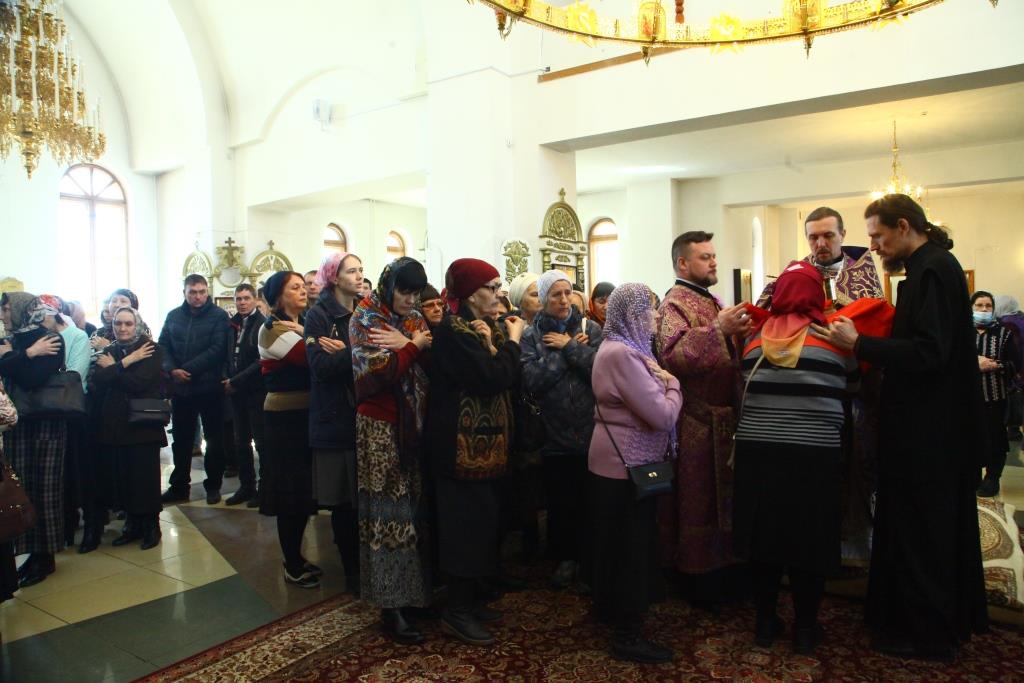 За богослужением молились: сотрудники епархиального управления, прихожане и паломники главного храма епархии, братия Свято-Троицкой мужской обители. Песнопения Божественной Литургии Преждеосвященных Даров исполнял хор Андреевского собора под управлением регента В. Федоровой.