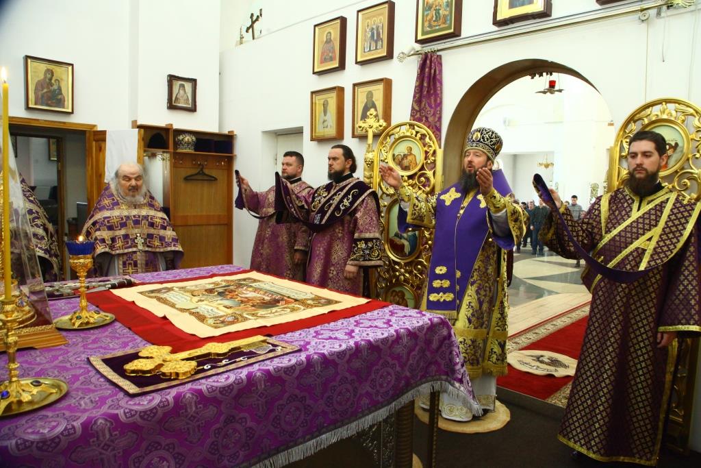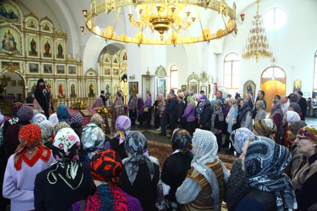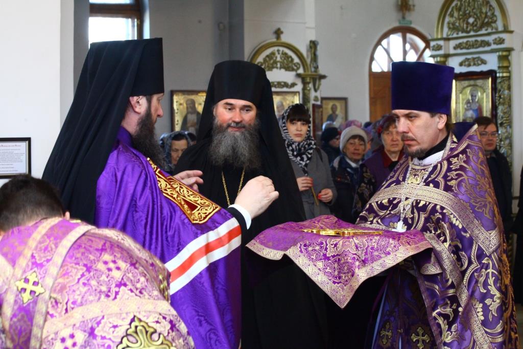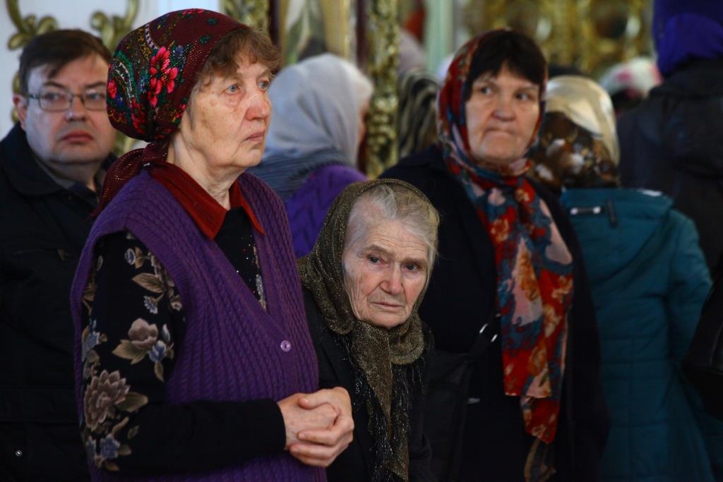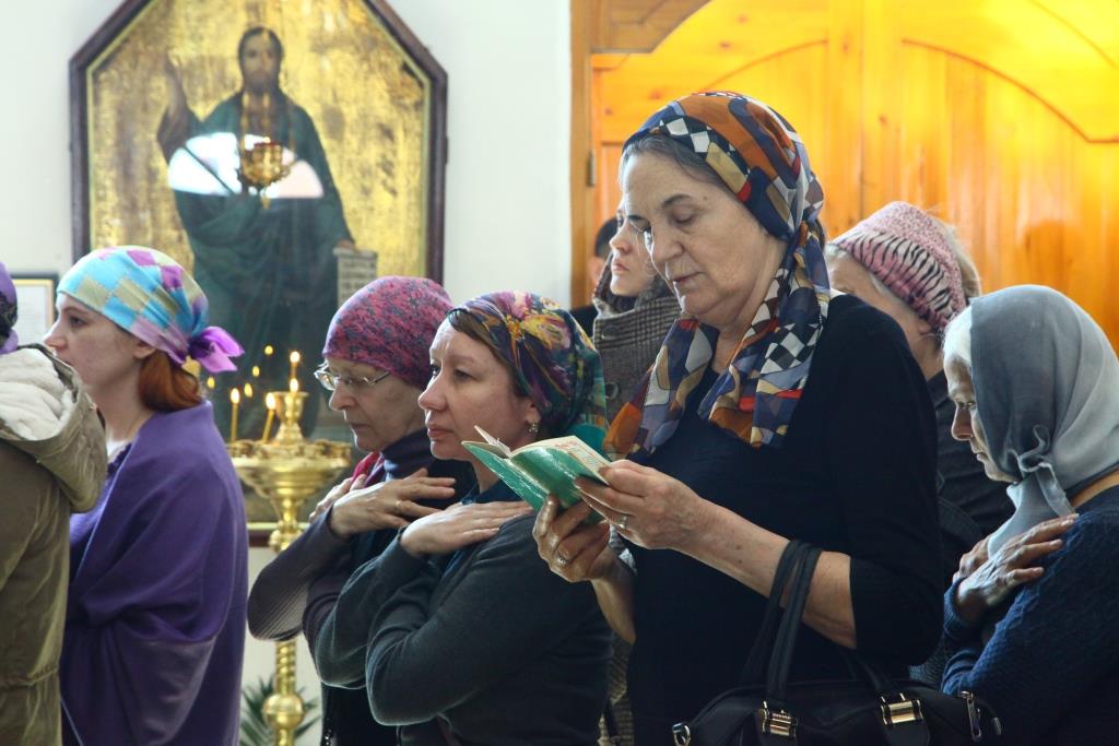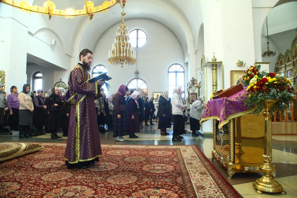 За богослужением молились: сотрудники епархиального управления, прихожане и паломники главного храма епархии, братия Свято-Троицкой мужской обители. Песнопения Божественной Литургии Преждеосвященных Даров исполнял хор Андреевского собора под управлением регента В. Федоровой.