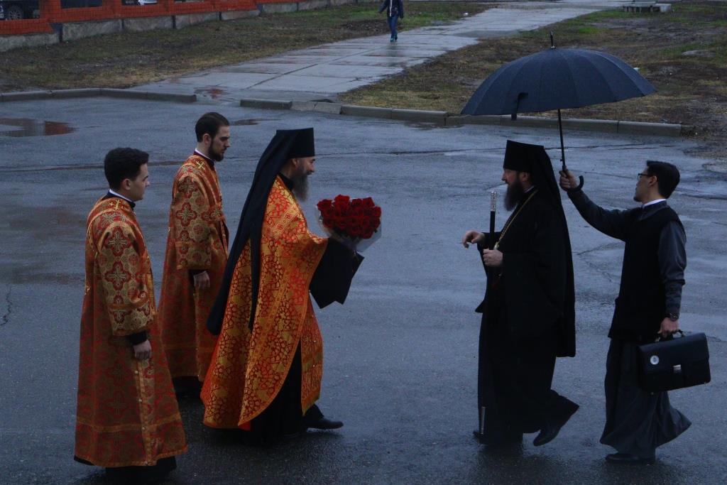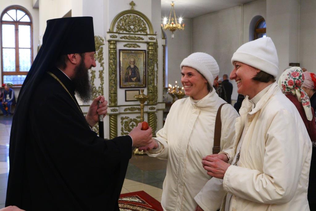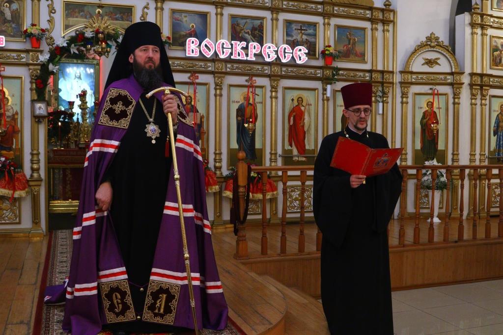 После окончания вечерни клирик Андреевского собора иерей Константин Дьяков огласил Пасхальное послание епископа Усть-Каменогорского и Семипалатинского Амфилохия, в котором Архипастырь отметил: «Светозарная ночь Воскресения Христова стала нашей надеждой и нашим упованием на грядущее коренное преобразование мира и всего человечества силой Сына Божия, преодолевшего вечное проклятие людского рода – смерть. По мысли блаженного Феодорита Кирского, Спаситель «всем нам обещал воскресение, давши воскресение честнаго Своего тела достоверным ручательством нашего воскресения». Жив во веки веков наш Господь! И всякий, верующий в Него, имеет жизнь вечную (ср. Ин. 3:36). Как писал в своих трудах преподобный Антоний Великий: «Господь наш Иисус Христос, по непостижимому смирению Своему, покрыл Божество Свое человечеством, так что все смотрели на Него, как на человека, тогда как Он не человек только был, но Бог вочеловечившийся, как написано: и Слово плоть бысть и вселися в ны (Ин. 1:14)». Господь пришел в мир, воспринявши на Себя всю полноту человечества, и ныне мы после Его страшных страданий, смерти и погребения, «Воскресение Христово видевше», веруем, что Он, Воскресший из мертвых, и нас удостоит такого великого дара – мы преодолеем смерть и в обновленном образе предстанем пред нашим Спасителем».