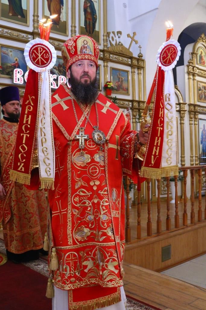 В день Воскресения Христова Преосвященнейший епископ Усть-Каменогорский и Семипалатинский Амфилохий возглавил служение Пасхальной вечерни в Свято-Андреевском кафедральном соборе города Усть-Каменогорска. Владыке епископу сослужили: духовник епархии архимандрит Спиридон (Теплухин), благочинный Усть-Каменогорского церковного округа иерей Алексий Анищенко, ключарь Андреевского собора иеромонах Никодим (Авдеев), клирики кафедрального собора и городское духовенство.