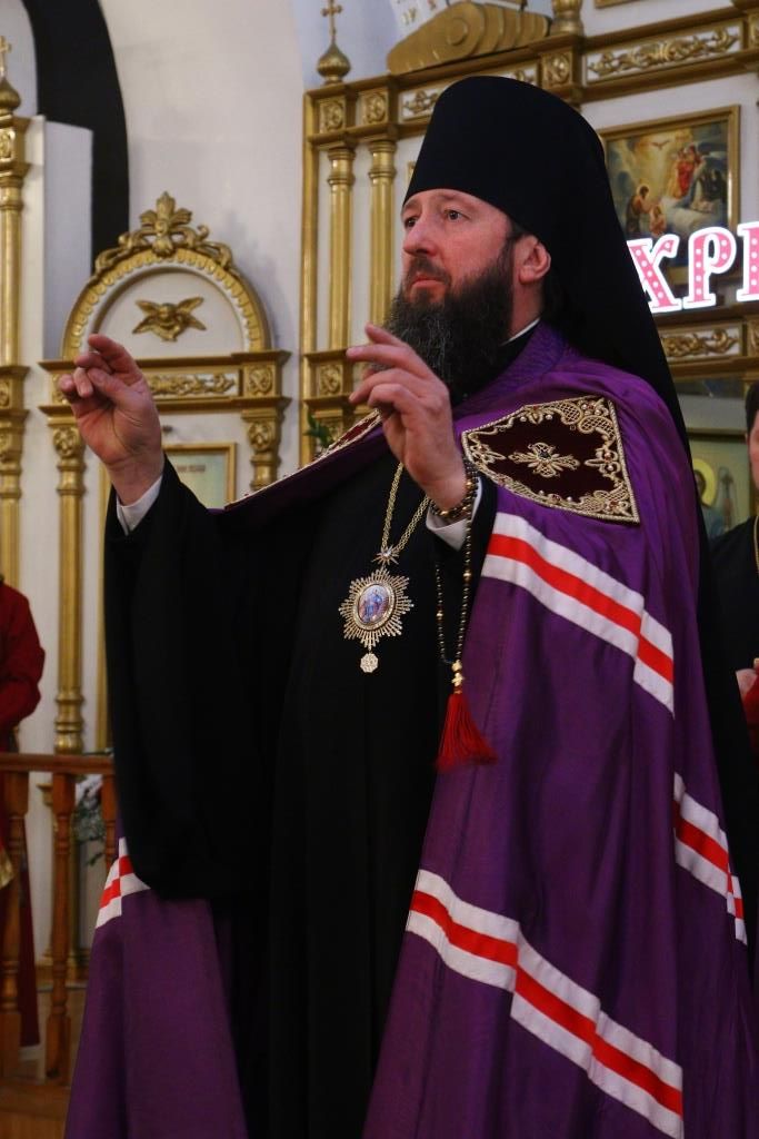 После чтения Пасхального послания Преосвященнейший Владыка обратился к духовенству и прихожанам с Архипастырским словом.
