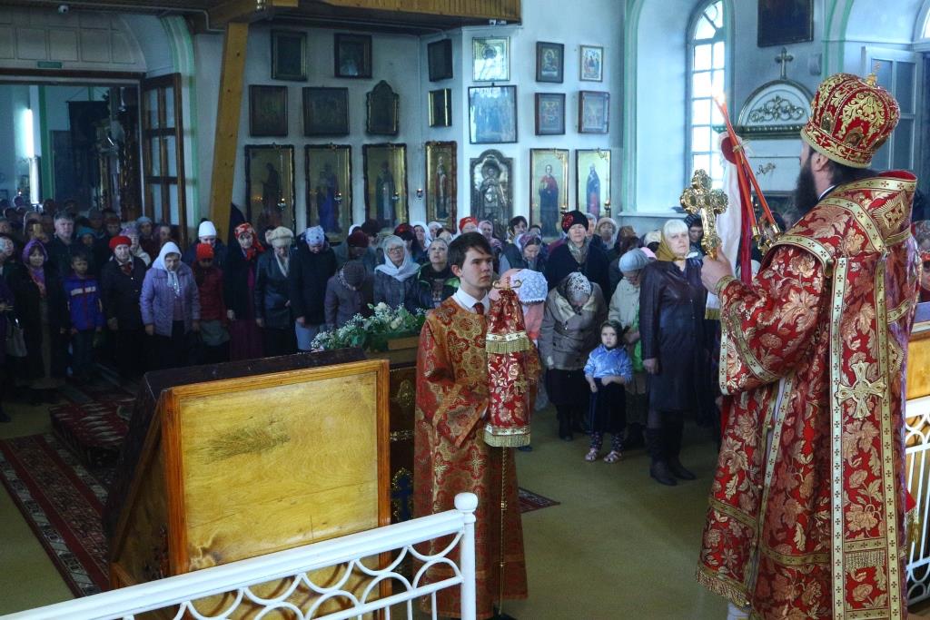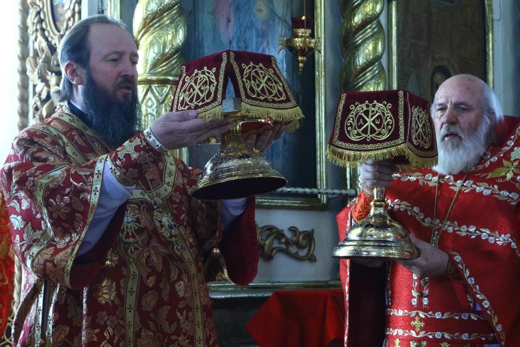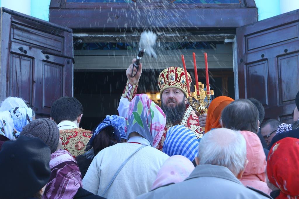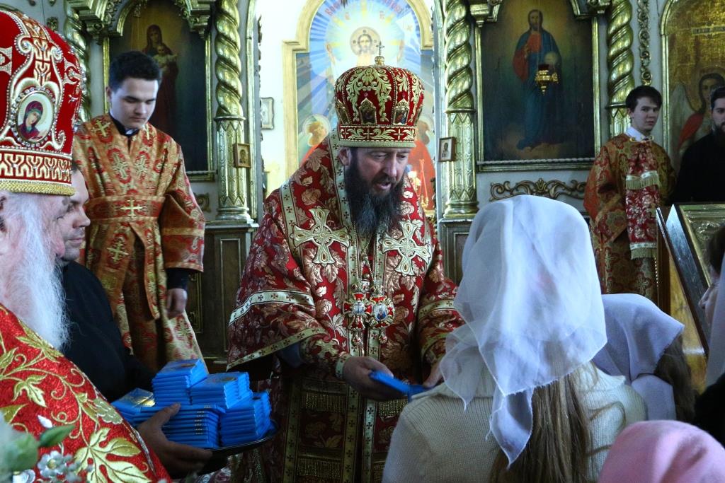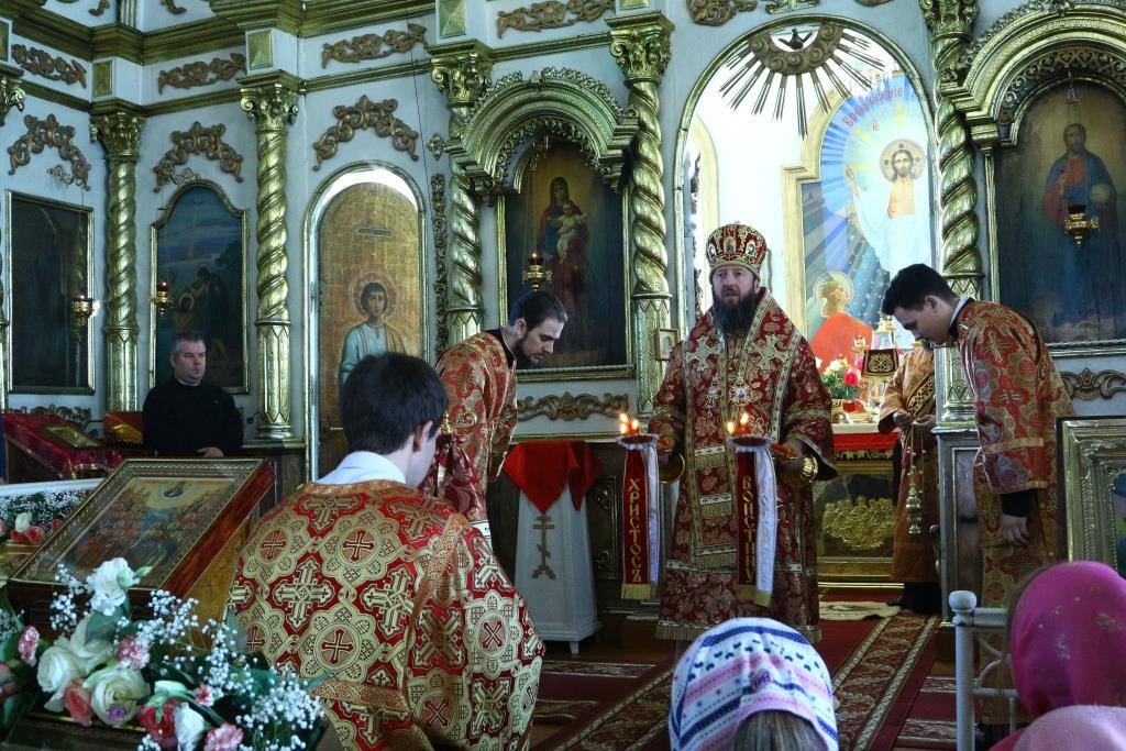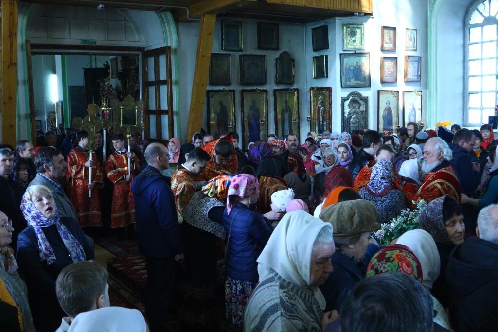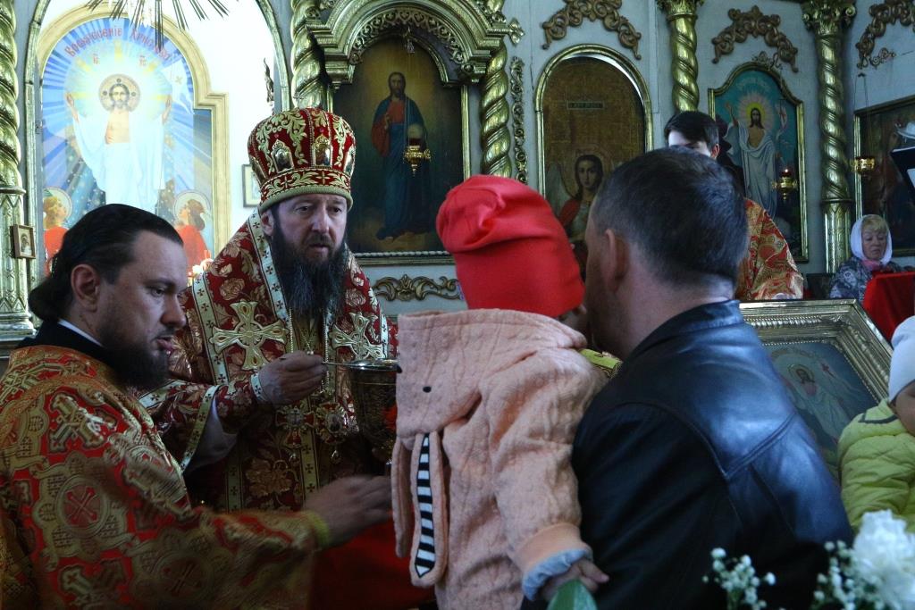 Перед причастием мирян проповедовал иерей Евгений Потылицын. После заамвонной молитвы был совершен крестный ход, после которого епископ Амфилохий поздравил духовенство и молящихся с престольным праздником и обратился к собравшимся со словами проповеди.