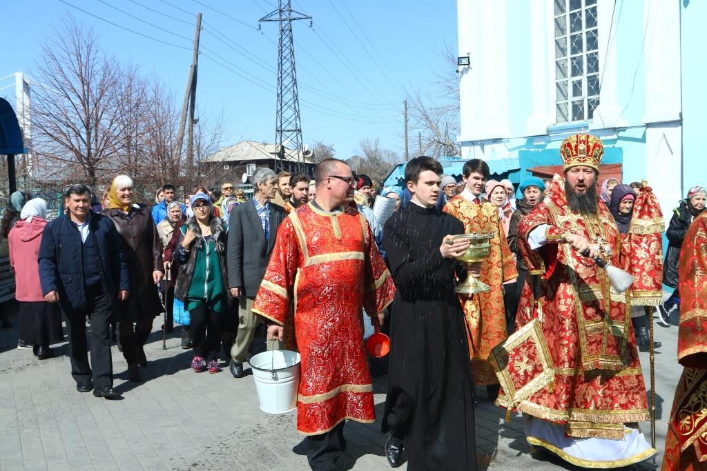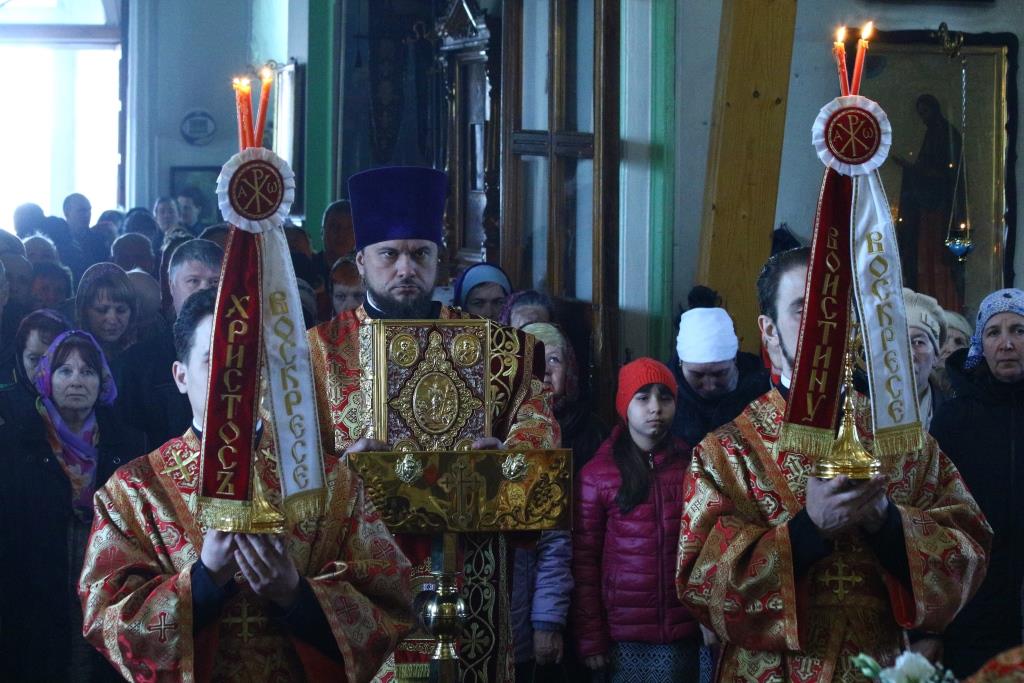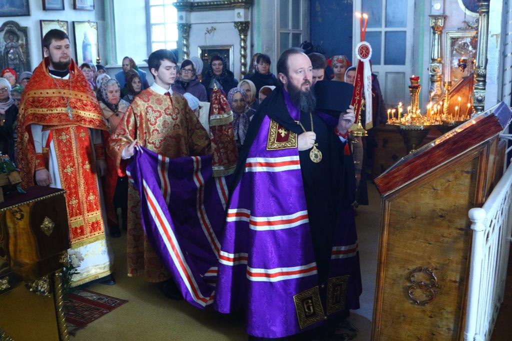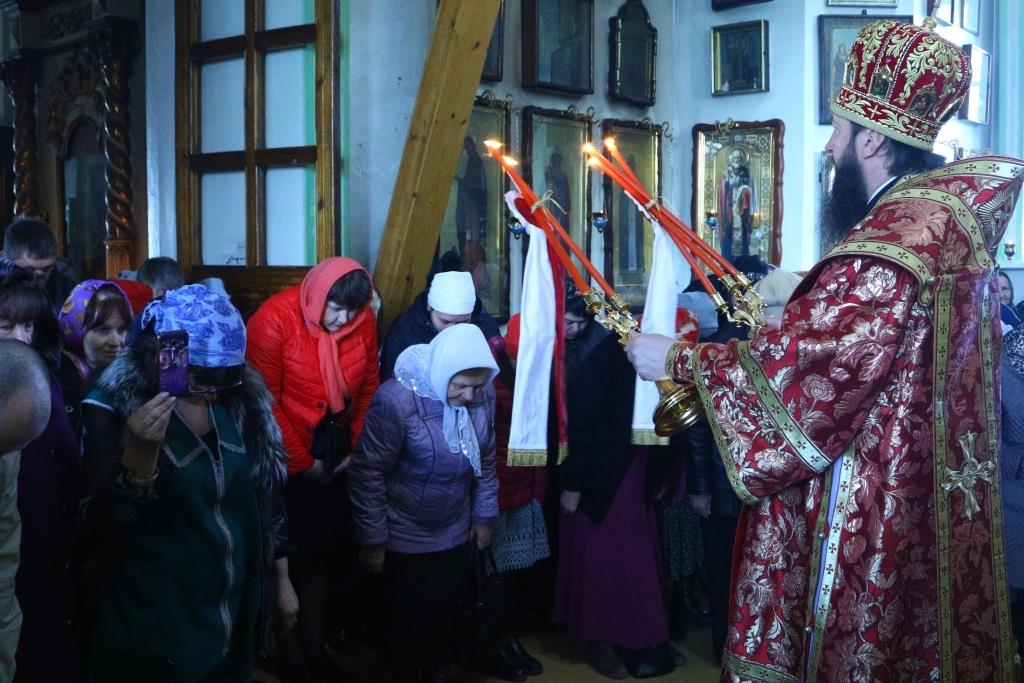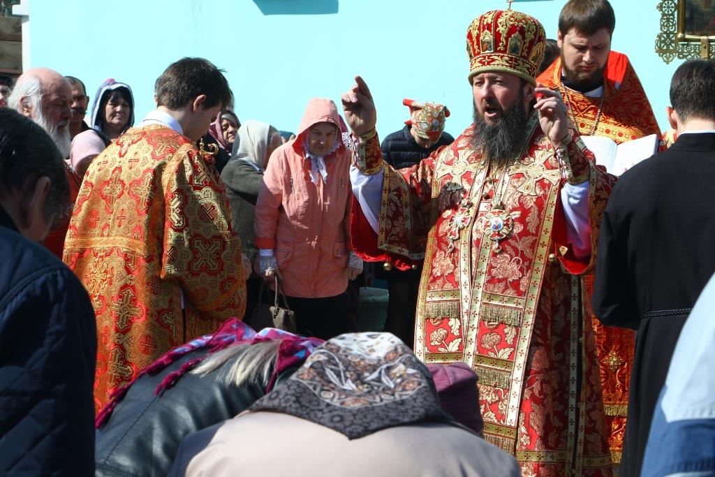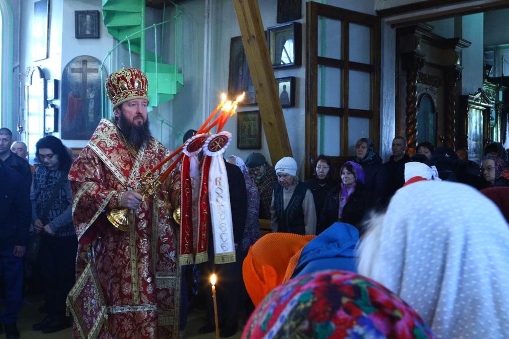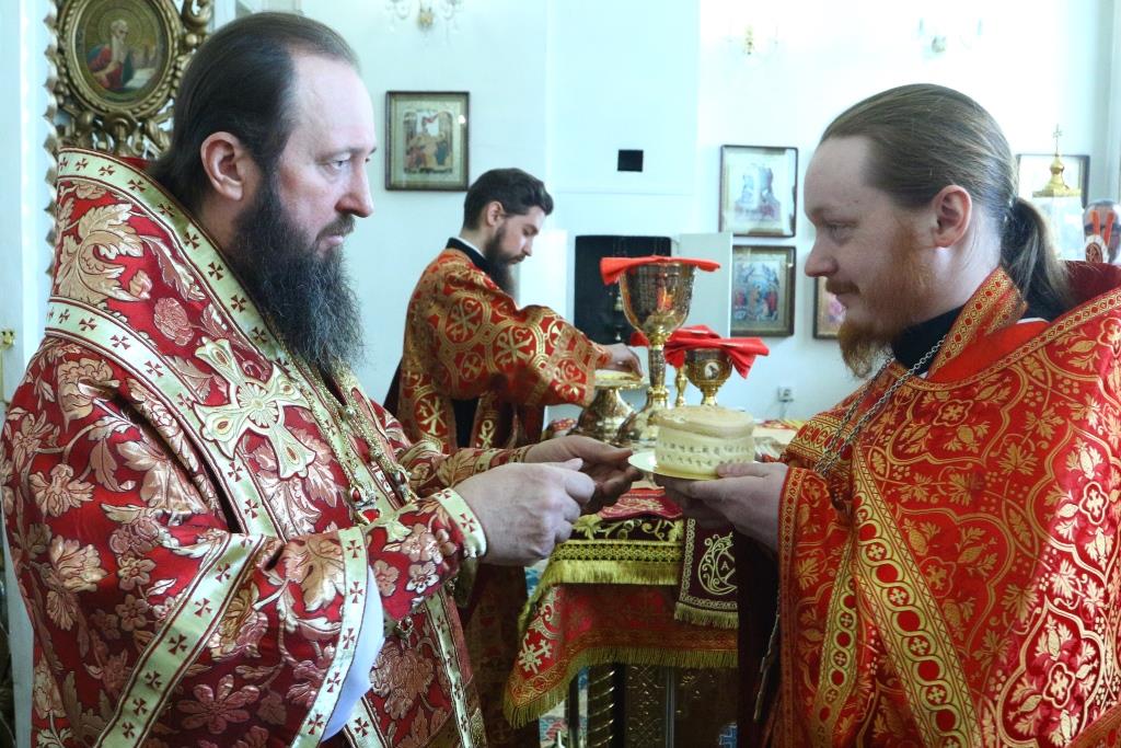 Перед причастием мирян проповедовал иерей Евгений Потылицын. После заамвонной молитвы был совершен крестный ход, после которого епископ Амфилохий поздравил духовенство и молящихся с престольным праздником и обратился к собравшимся со словами проповеди.