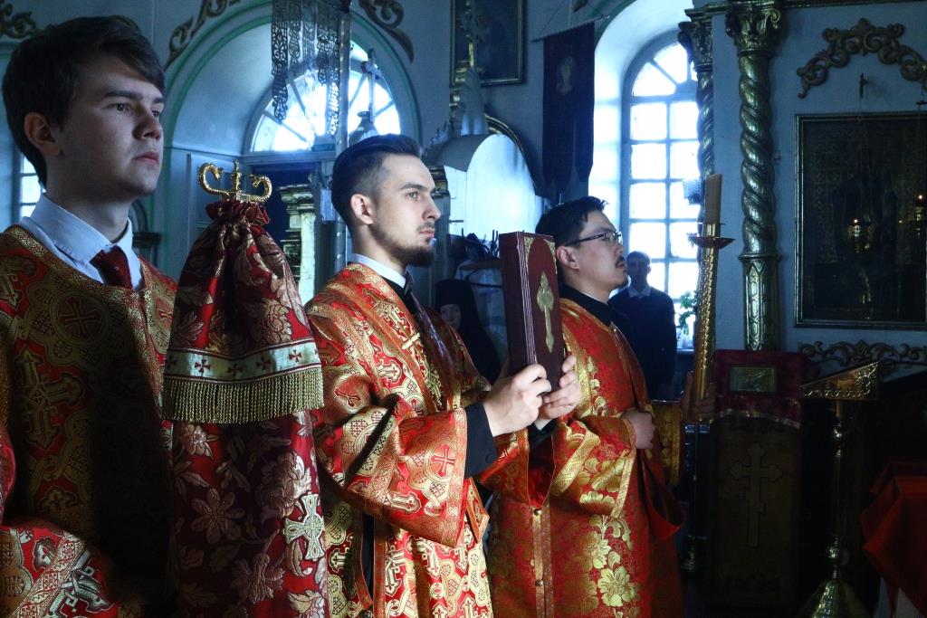 Праздничные песнопения исполнял хор Воскресенского собора под управлением регента Ю. Хохряковой. За праздничным богослужением молились: настоятельница Знаменско-Абалацкого женского монастыря игуменья Марионилла (Помельникова) с сестрами обители, преподаватели и воспитанники приходской воскресной школы, прихожане Воскресенского собора, прихожане и паломники с окрестных населенных пунктов.