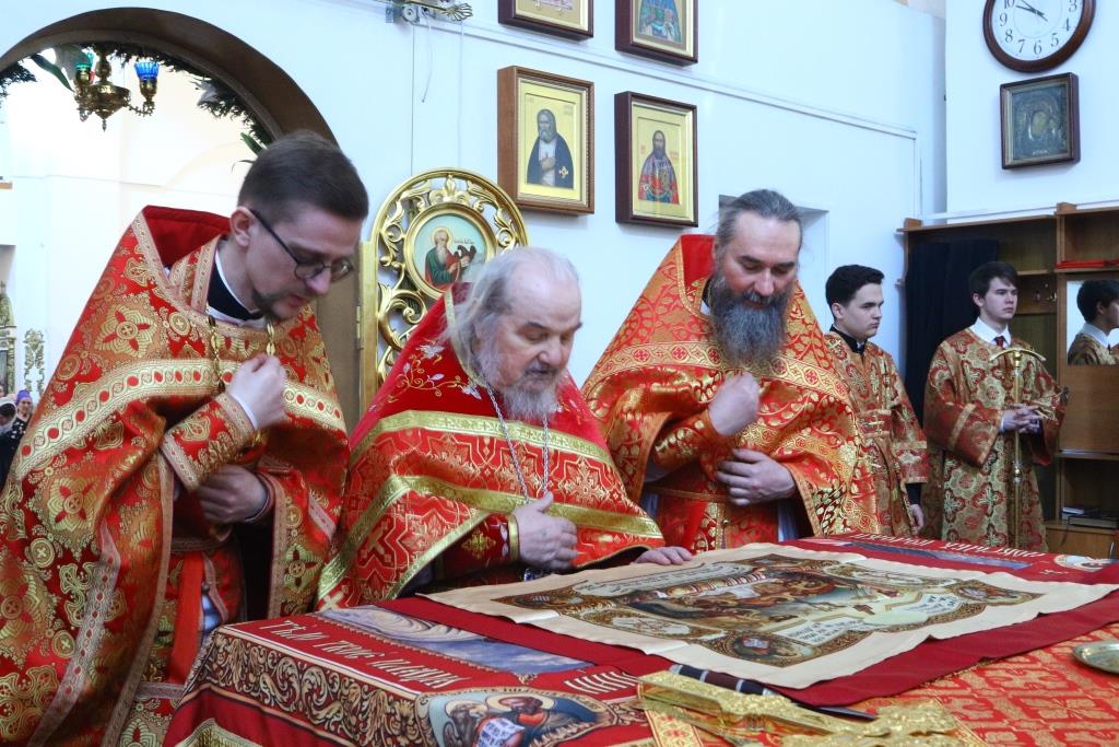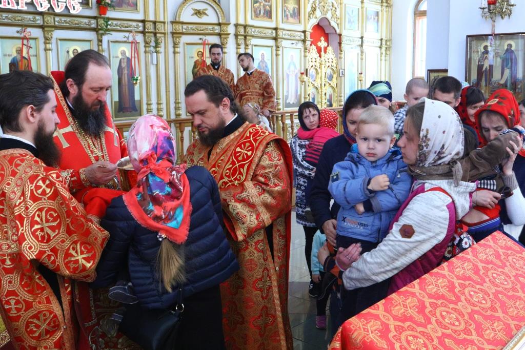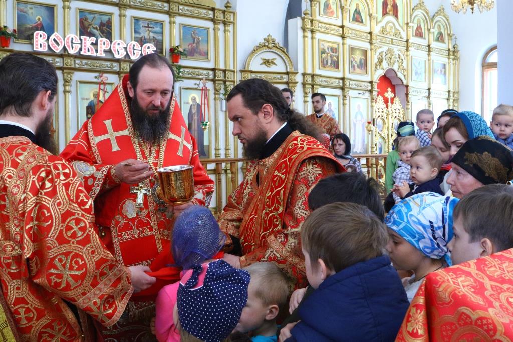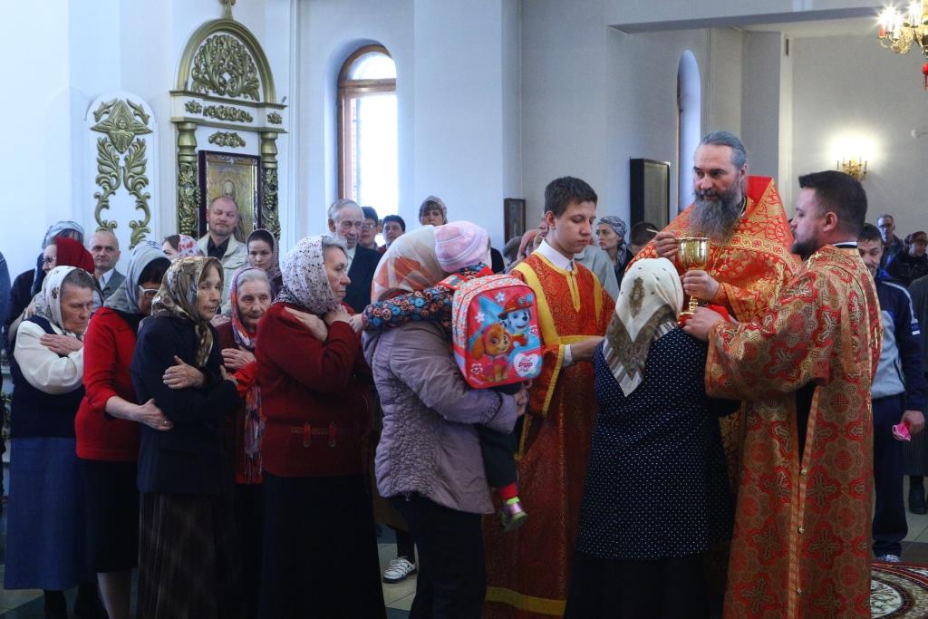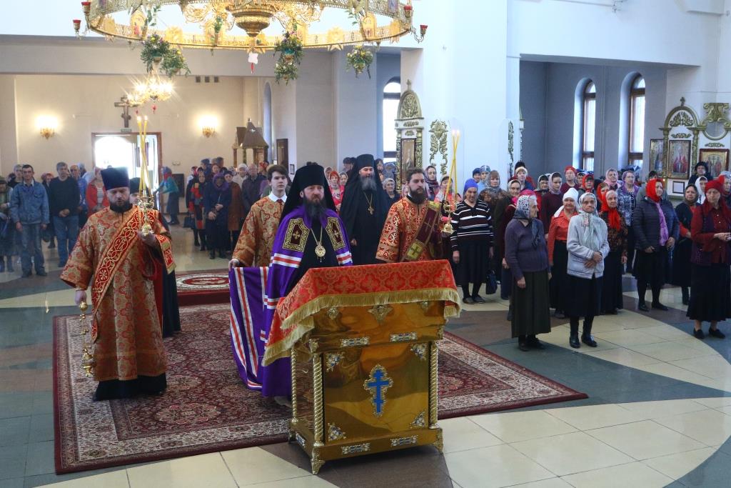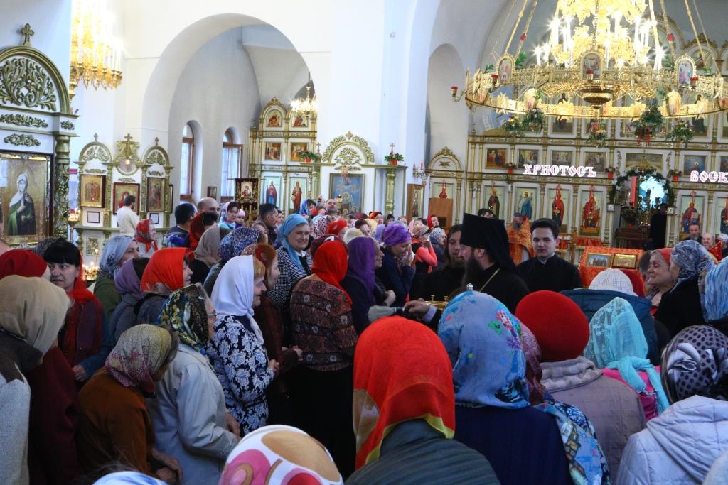 На воскресном богослужении молились сотрудники епархиального управления, насельники Свято-Троицкого мужского монастыря, прихожане и паломники главного храма епархии. Песнопения Божественной Литургии исполнял хор собора под управлением регента Н. Романцовой. Перед причастием мирян проповедовал священник Константин Дьяков.