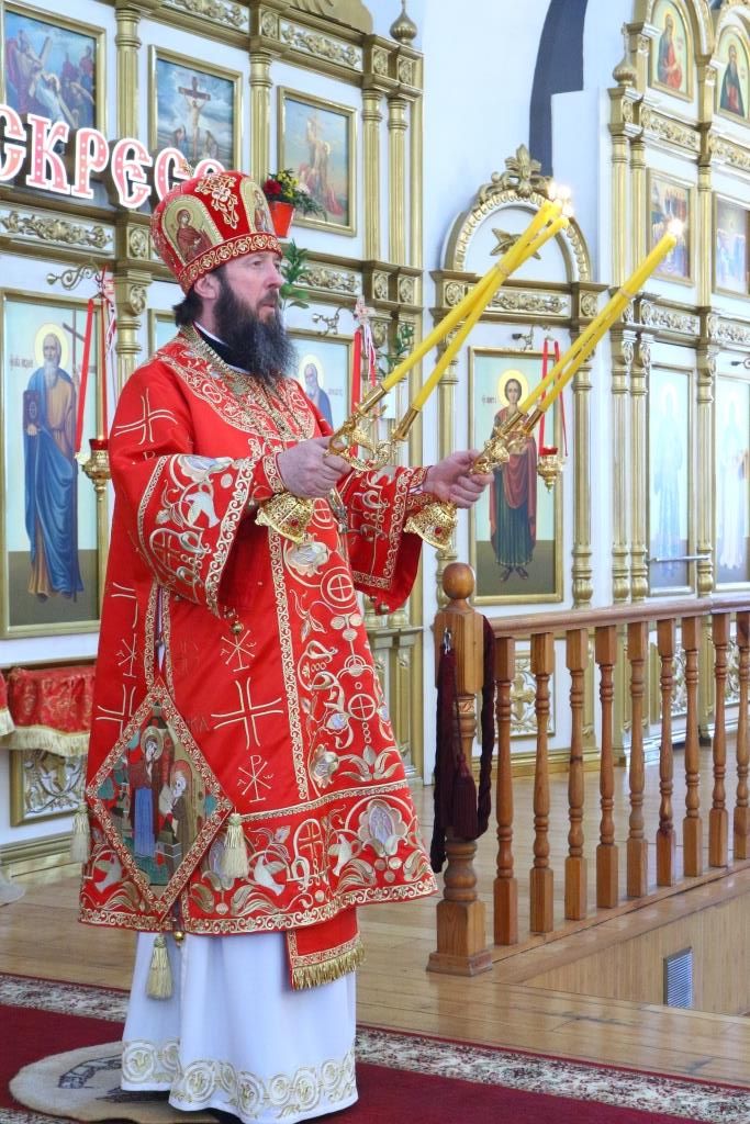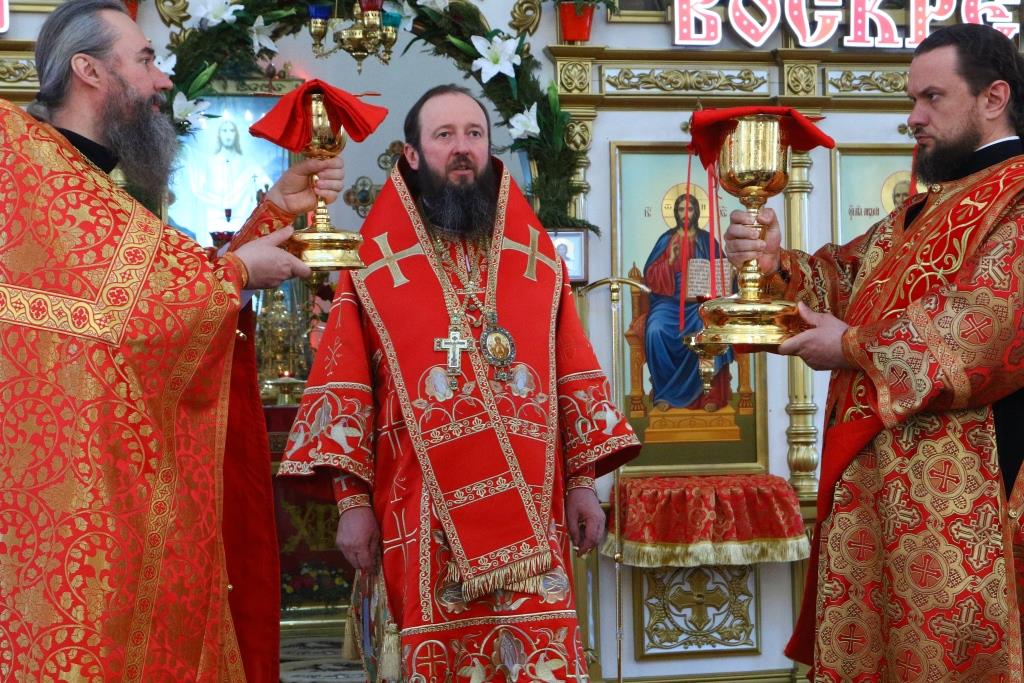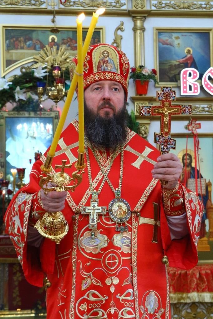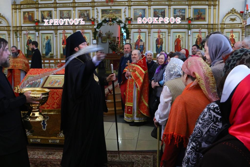 После отпуста Божественной Литургии епископ Амфилохий поздравил прихожан с праздником Воскресения Христова и обратился к народу Божию со словами наставления.