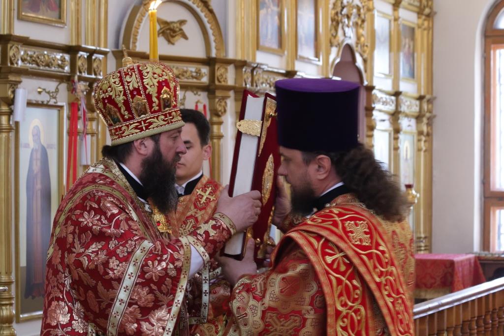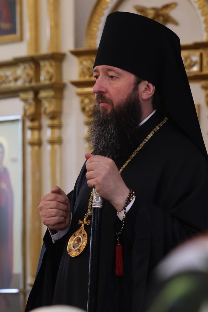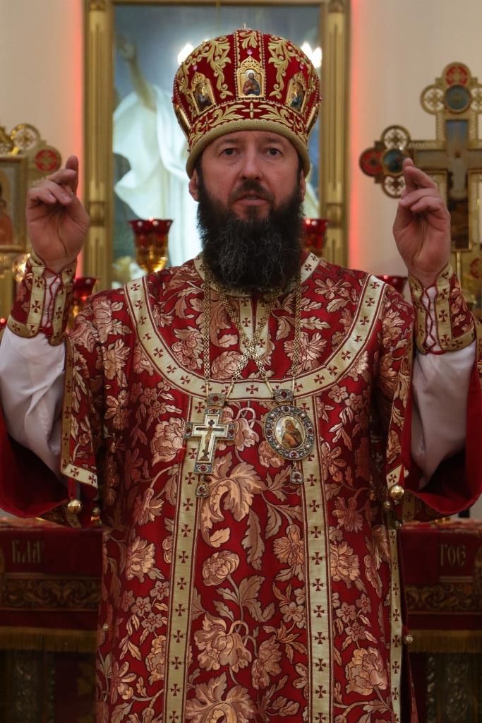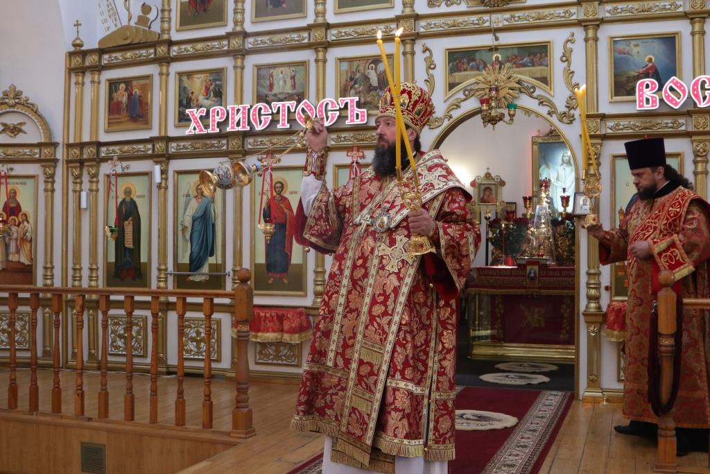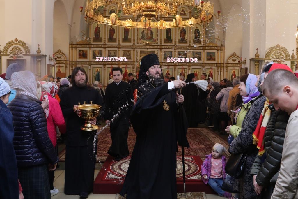 После Богослужения Преосвященнейший Владыка поздравил духовенство и мирян с праздником Пасхи Господней и обратился к молящимся со словами проповеди.