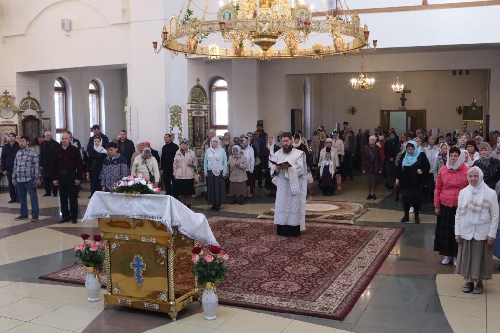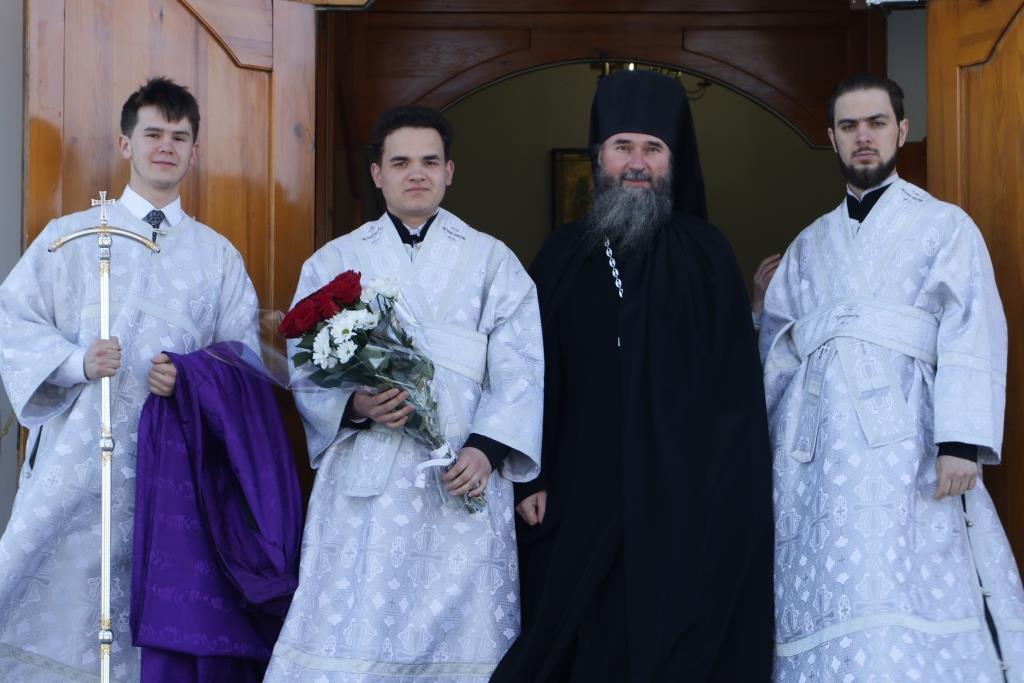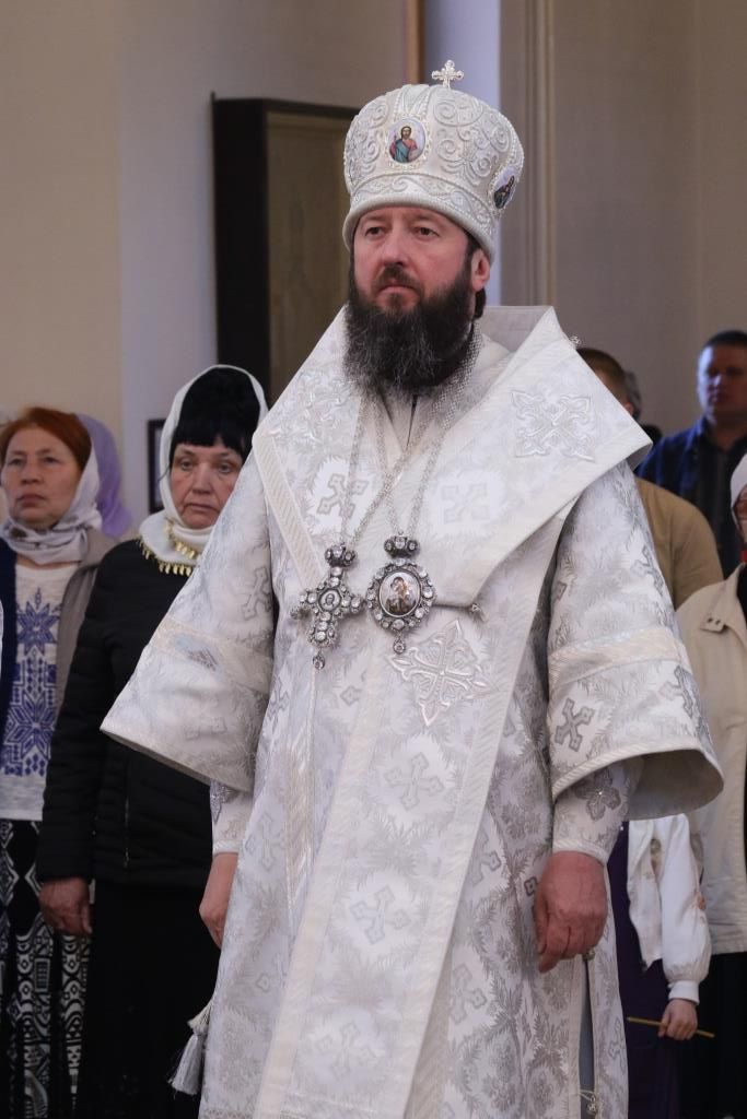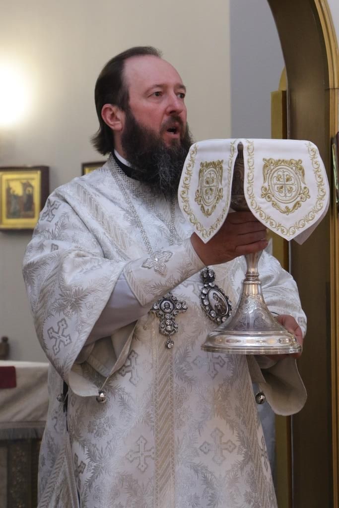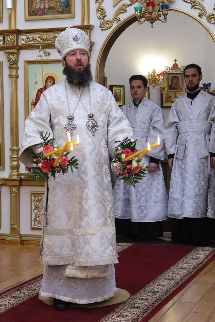 Перед причастием мирян проповедовал ключарь кафедрального собора. Праздничное богослужение завершилось славлением Господу и Спасителю Иисусу Христу, после чего Владыка епископ обратился к молящимся со словами проповеди.