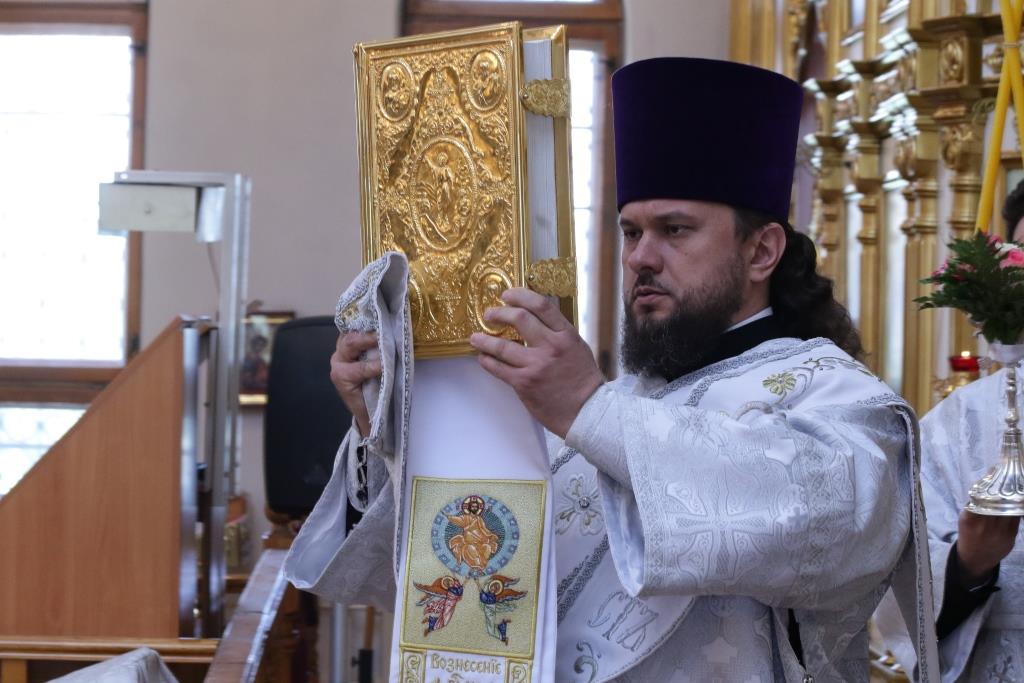 В день праздника Вознесения Господня Преосвященнейший епископ Усть-Каменогорский и Семипалатинский Амфилохий совершил Божественную Литургию святителя Иоанна Златоуста в Андреевском кафедральном соборе города на Иртыше. Архипастырю сослужили: духовник епархии архимандрит Спиридон (Теплухин), ключарь кафедрального собора иеромонах Никодим (Авдеев), клирики собора иерей Константин Дьяков, протодиакон Андрей Дудник, иеродиакон Мефодий (Шевчук), диакон Владимир Лаврешин, секретарь епархии диакон Илия Кван.