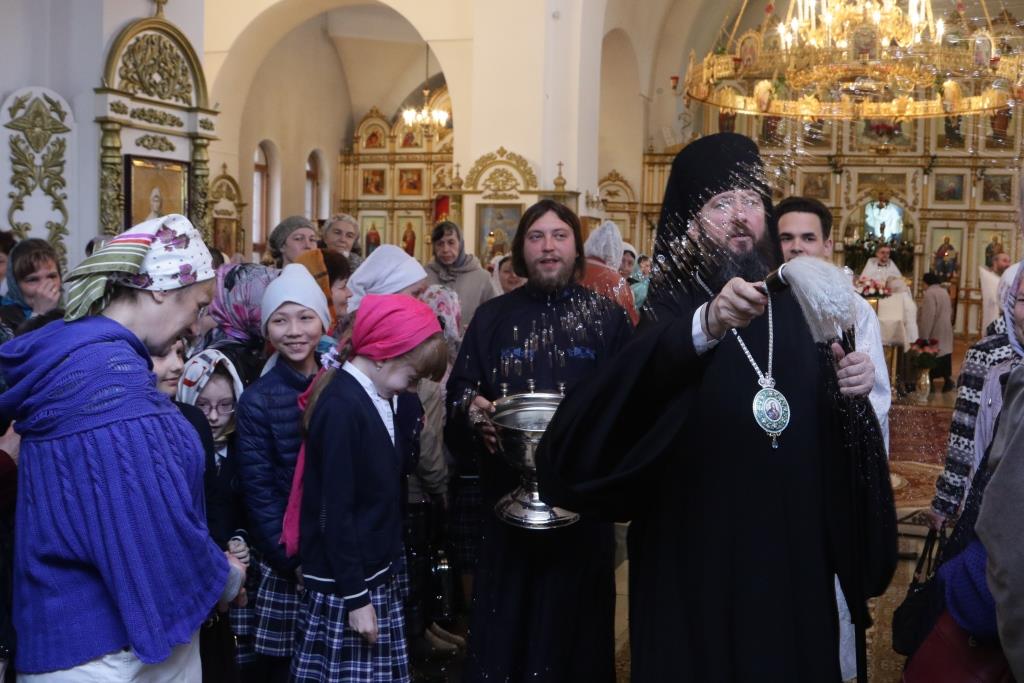 После проповеди Преосвященнейший Архипастырь пожелал всем собравшимся крепости духовных и телесных сил и окропил молящихся святой водой.