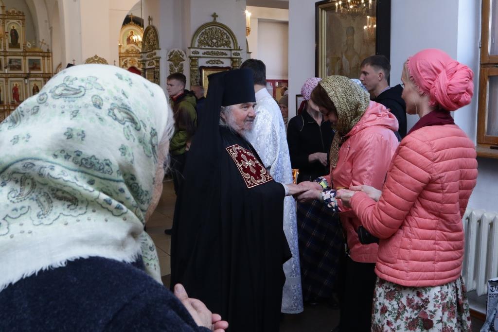 В завершение Божественной Литургии Преосвященнейший Архипастырь призвал на собравшихся Божие благословение и пожелал всем мира и спасения души.