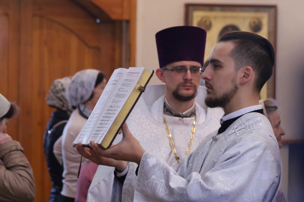 Песнопения воскресного дня и Божественной Литургии исполнял хор Андреевского собора под управлением регента Н. Романцовой. За богослужением молились прихожане главного храма Рудного Алтая, преподаватели и воспитанники Центральной воскресной школы, сотрудники епархиального управления, братия Свято-Троицкого мужского монастыря. Перед причастием мирян проповедовал ключарь кафедрального собора.