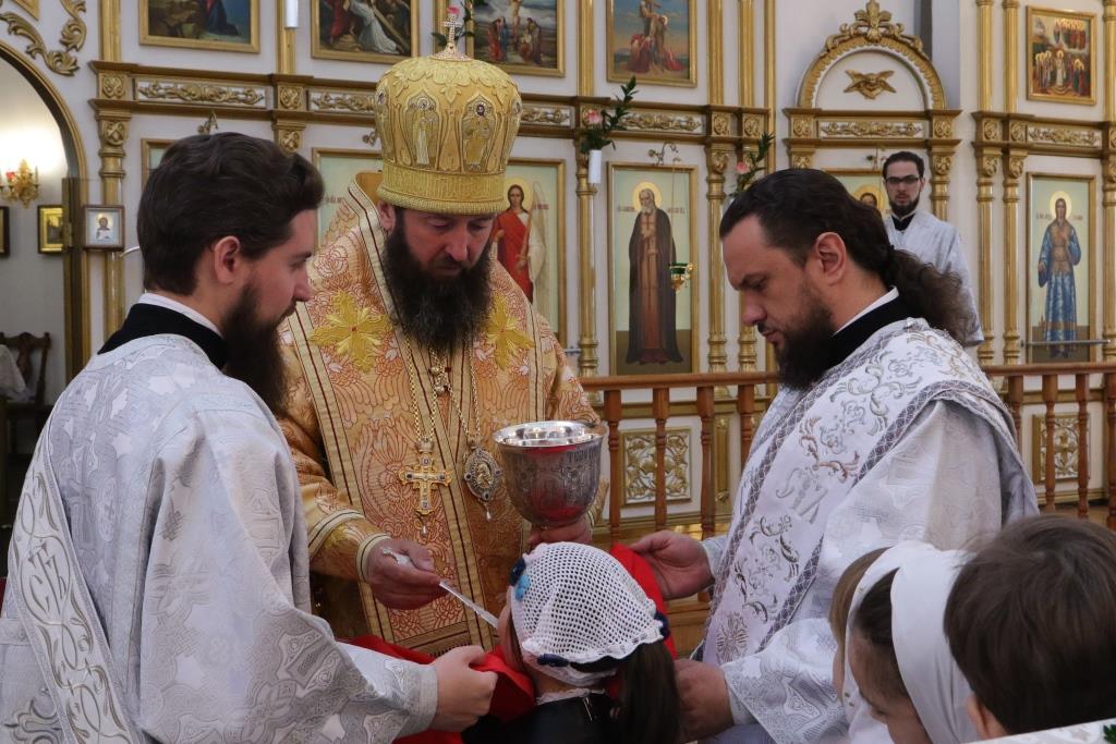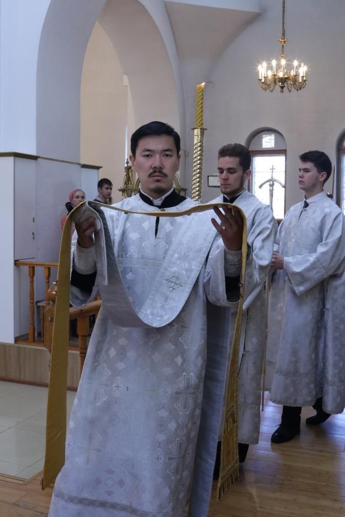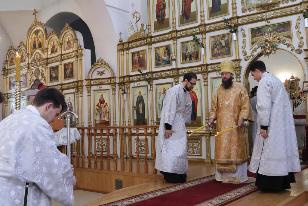 В седьмое воскресение после праздника Пасхи Господней Преосвященнейший епископ Усть-Каменогорский и Семипалатинский Амфилохий возглавил служение Божественной Литургии святителя Иоанна Златоуста в кафедральном соборе во имя святого апостола Андрея Первозванного города Усть-Каменогорска.