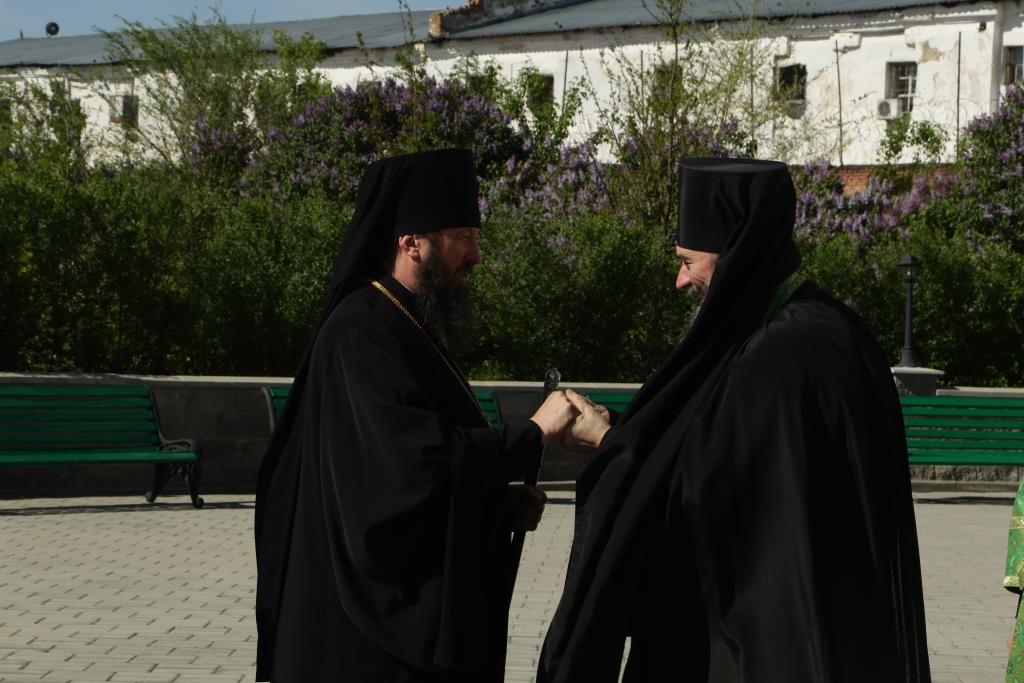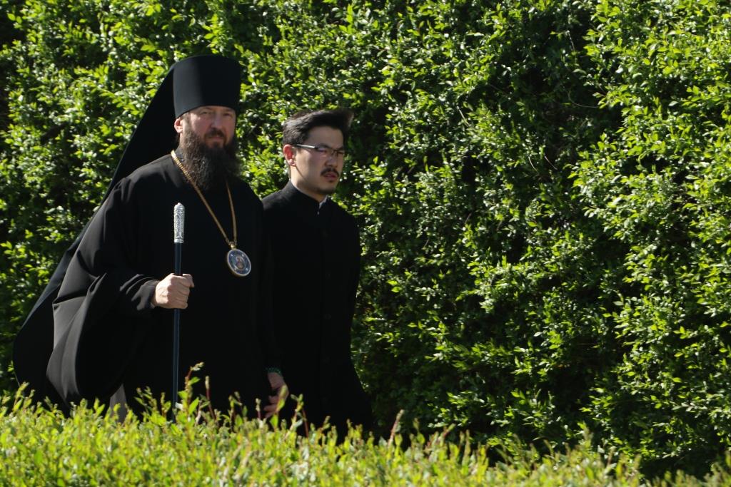 Архипастырю сослужили: духовник епархии архимандрит Спиридон (Теплухин), ключарь Андреевского собора иеромонах Никодим (Авдеев), клирики собора иерей Алексий Клепиков, иерей Константин Дьяков, протодиакон Андрей Дудник, иеродиакон Мефодий (Шевчук), секретарь епархии диакон Илия Кван.