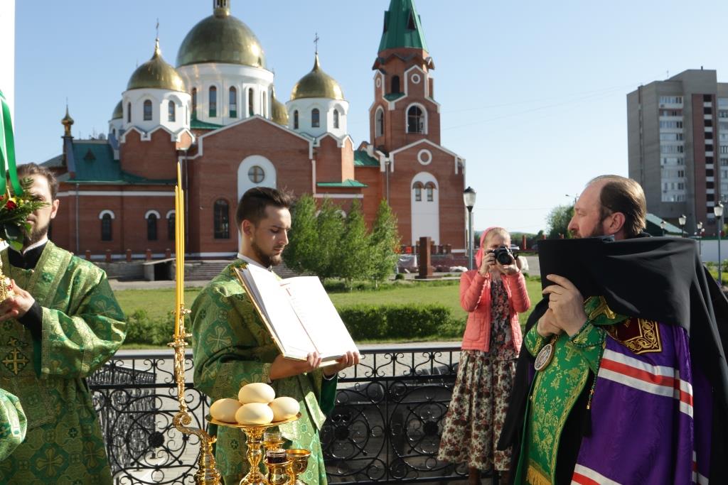 Праздничные песнопения исполнял хор Андреевского собора под управлением регента Н. Романцовой. Во время литии был совершен крестный ход вокруг Свято-Троицкого собора. После прочтения евангельского зачала Владыка епископ помазал духовенство и прихожан освященным елеем.
